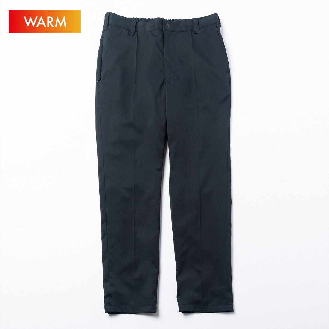 特 徴:Bizウォームテーラードジャケット同様、保温性の高い裏地を使用したパンツ。ウエストは背面ゴムで、体型の変化にも柔軟に対応します。
