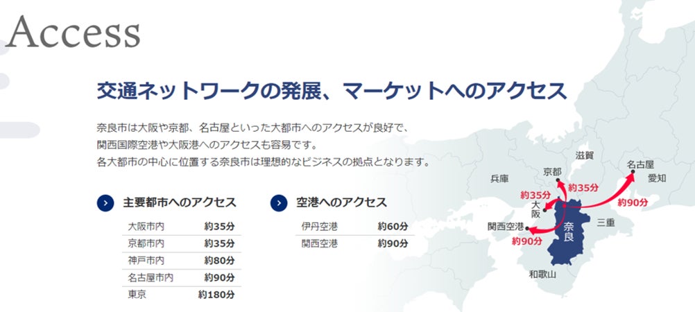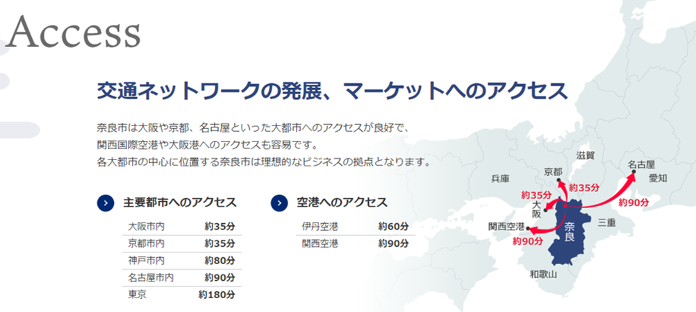 奈良市は、大阪や京都などの大都市圏や空港へのアクセス性の良さ、