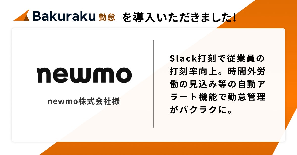 「移動で地域をカラフルに」がミッションのnewmo株式会社が「バクラク勤怠」を導入。Slack打刻で従業員の打刻率向上、時間外労働の見込み等の自動アラート機能で勤怠管理がバクラクに。
