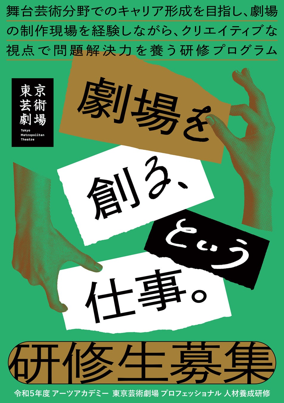 東京芸術劇場では、公立文化施設や芸術団体等への就職を目指す若手人材に、キャリアチェンジを目的とした研修プログラムを実施しています。この度、2023年度の研修生を募集いたします。