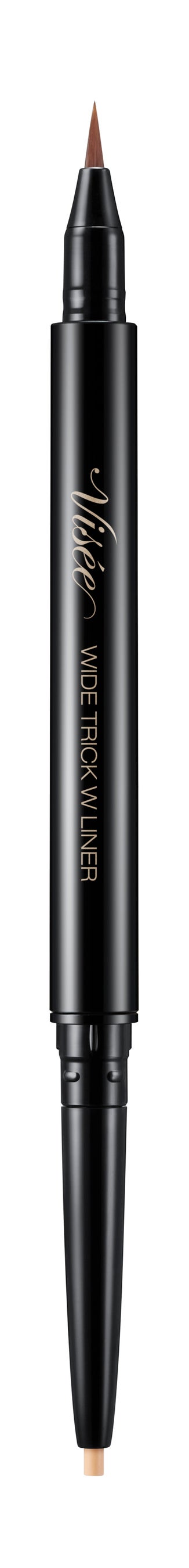 同じ『ヴィセ』から同時に発売する「ワイド トリック ダブルライナー」は、薄付きのリキッドアイライナーと涙袋用コンシーラーが1つになったアイテムです。涙袋などのふっくらと見せたい部分にコンシーラーを塗布し、涙袋の下や上まぶたの二重ラインなど、影をつけたい部分にリキッドアイライナーを塗布することで、自然に目元を大きく見せることができます。動きが多く、化粧くずれが気になる目元に合わせて、密着性とキープ力に優れた化粧持ち成分をそれぞれ配合。こすれに強く、つけたての仕上がりが長続きします。