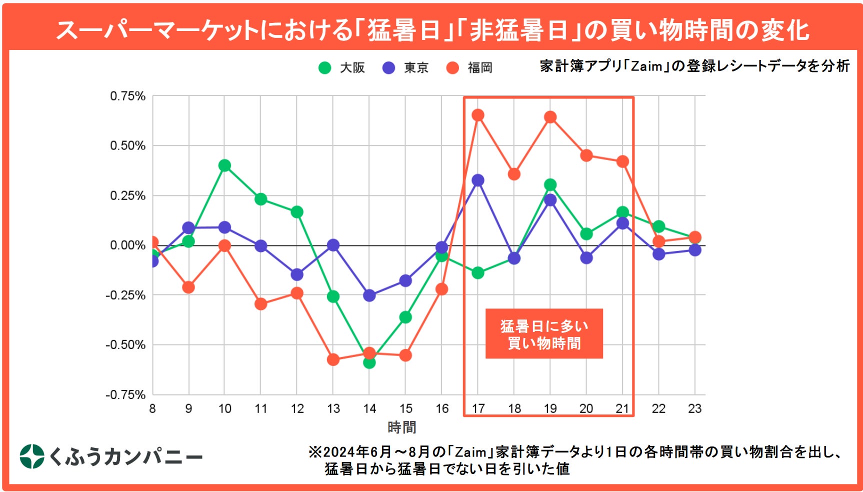 今後も猛暑傾向が続くと、夏のスーパーでの食料品の購入はさらに夕方以降に偏っていくのではないかと推察されます。