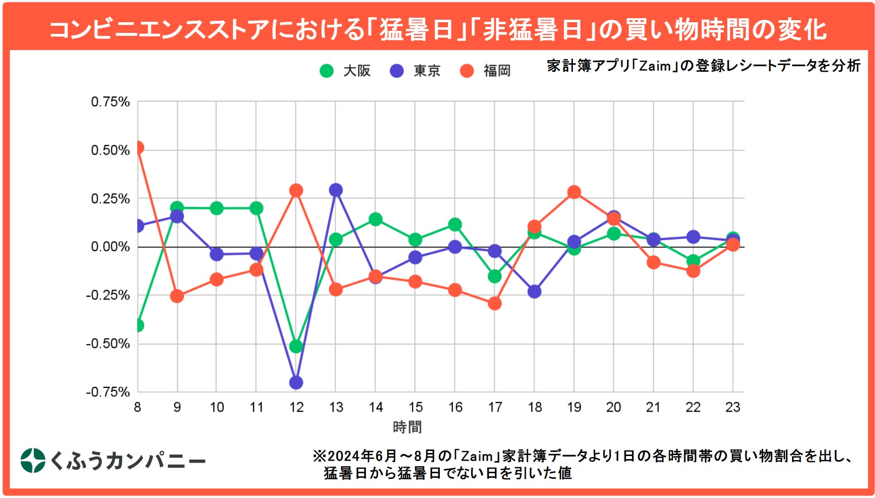 家計簿アプリ「Zaim」に登録されたレシートの買い物時間を分析し、猛暑日と猛暑日でない日を比較したところ、買い物時間の変化がみられました。