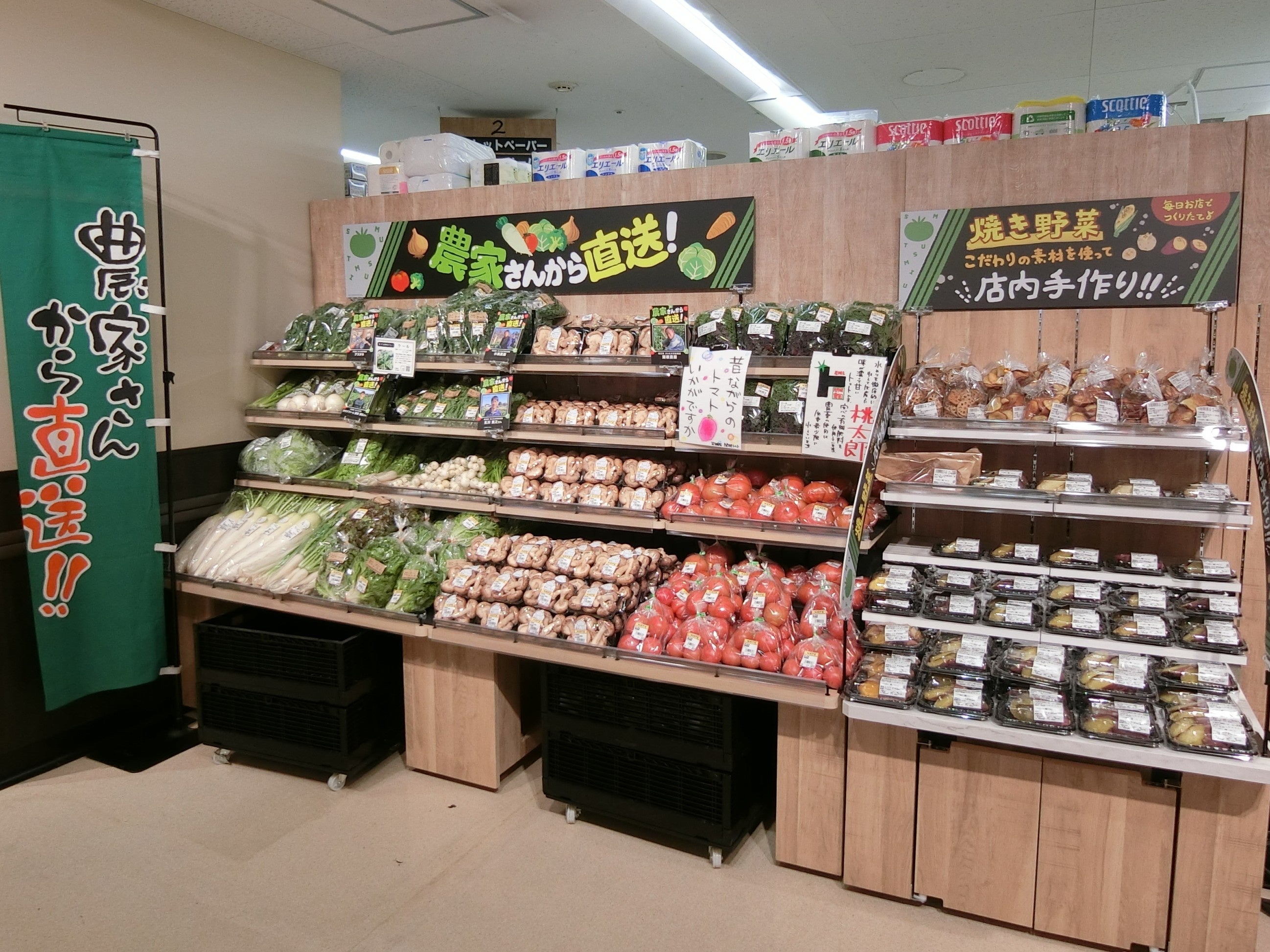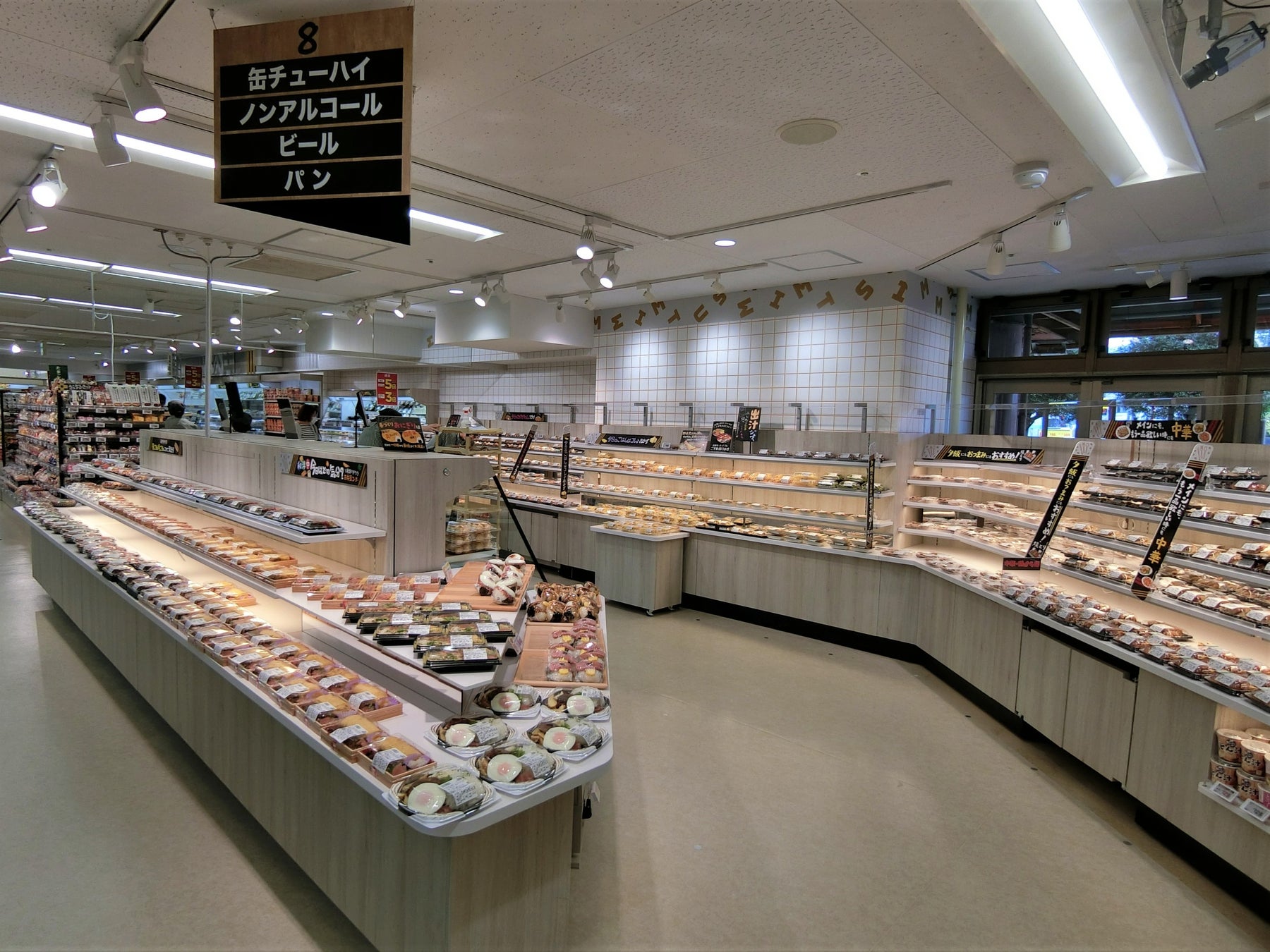 入口では、旬を感じさせる明るい青果売場とサミットロゴをモチーフにした新たな内装でお迎えします。店内手作りフレッシュサラダ・カットフルーツのコーナーや、農家さんから直送コーナーも充実。青果売場の隣に移った精肉売場では、便利な味付け肉やレンジ・オーブントースター調理ができる商品も提供します。生鮮素材を使って店内調理したお肉総菜や焼魚・煮魚も、精肉・鮮魚売場の中央にまとめてコーナー化したので、その日の気分にあわせて「素材から調理したい」「手間なく準備したい」と選びやすくなりました。広くなった総菜売場では、弁当・寿司や麺類、温・冷総菜等を種類豊富に品揃えし、売場奥には新たに手作りパン「ダン・ブラウン」のコーナーも設置しました。