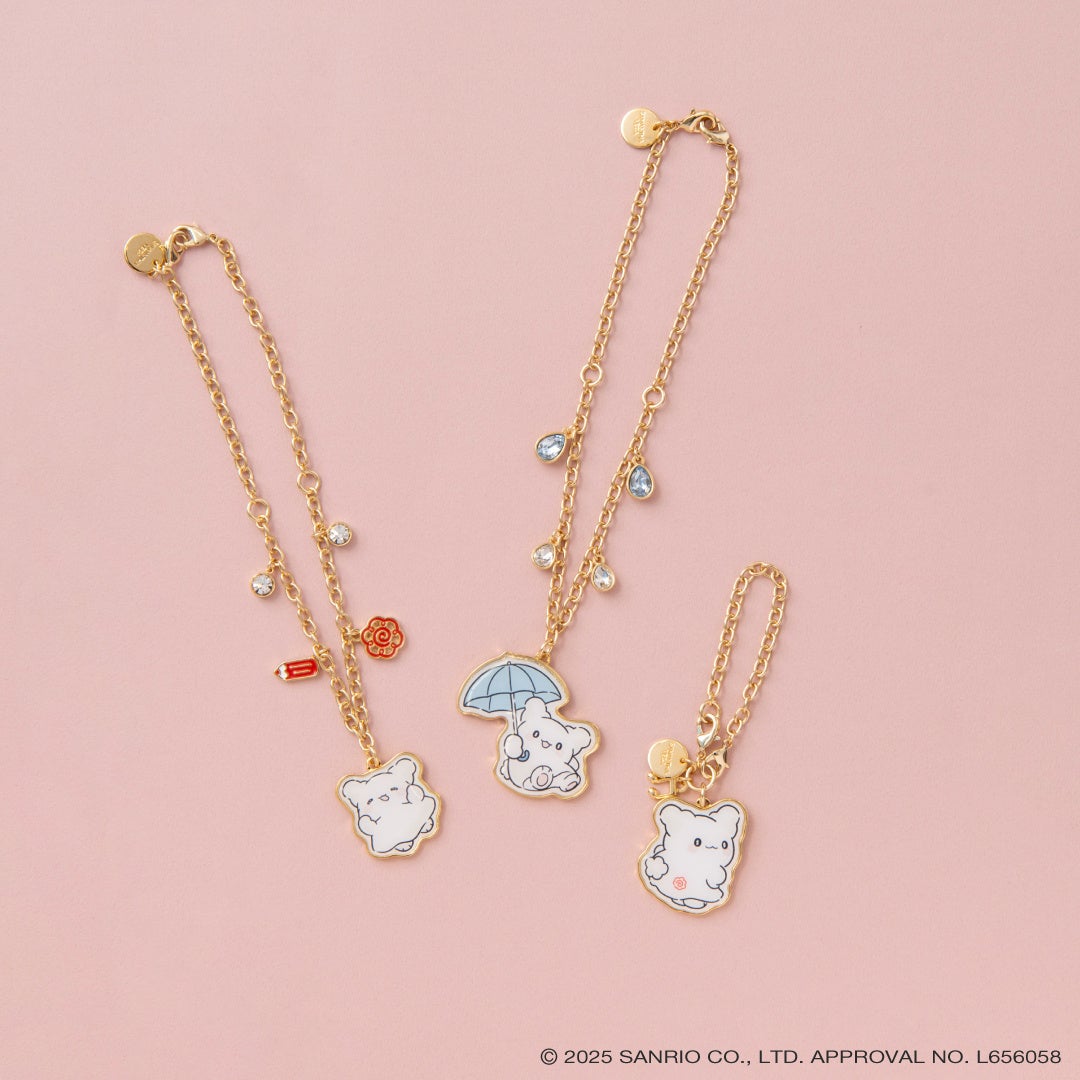 雨の日チャームは、傘を持ったはなまるおばけを金具に起こしたデザインで