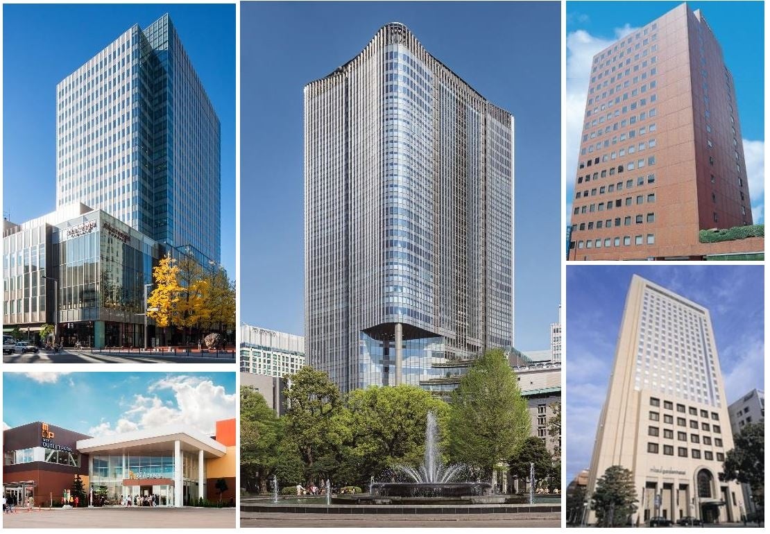 中央:東京ミッドタウン日比谷 左上:札幌三井JPビルディング 右上:広島三井ビルディング