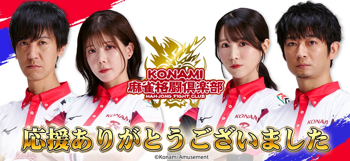 来シーズンは皆さまの期待にお応えできるよう、さらなるチーム強化に努めますので「KONAMI麻雀格闘倶楽部」の活躍にどうぞご注目ください。