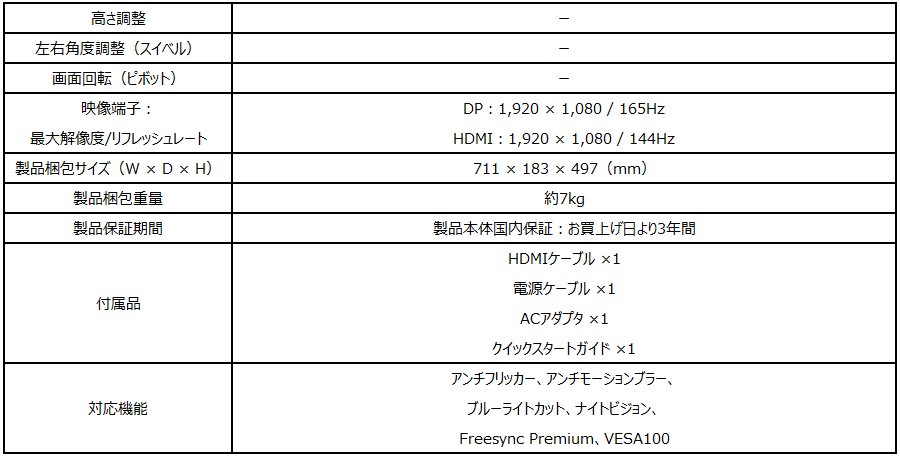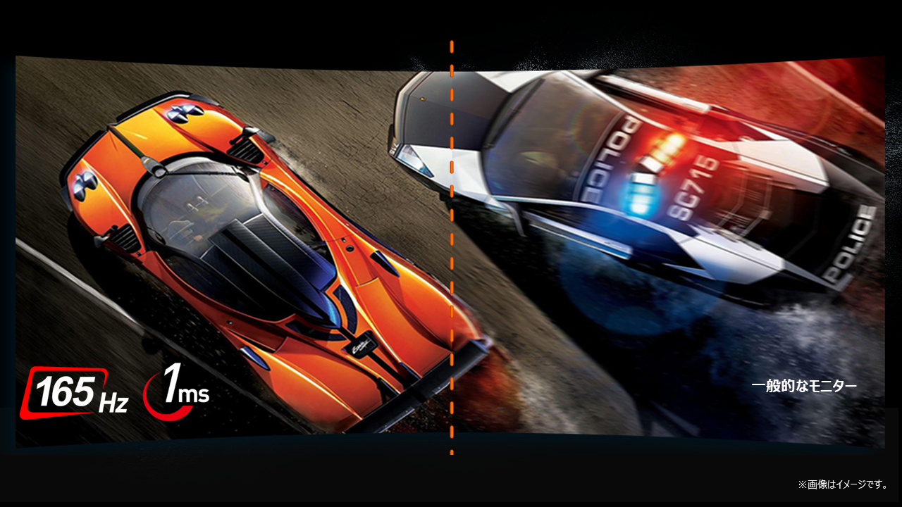 レースゲームやFPSゲームなど激しい動きのゲームでも滑らかな映像を残像感無く表示出来ます。