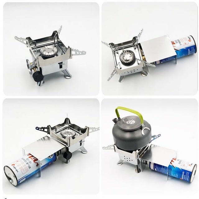 直接カセットボンベに熱が届かないようにする遮熱板/防風板付き!「防風板付き シングルバーナー 小型コンロ BBQ キャンプ」が販売開始します。