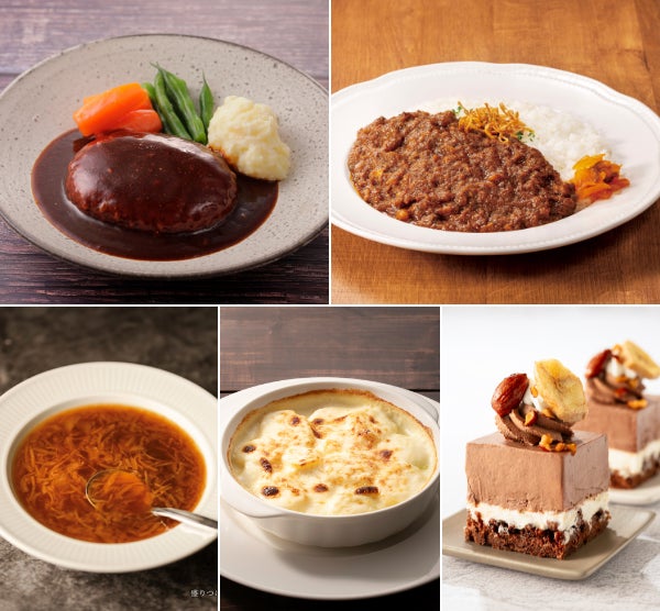 ドミグラスハンバーグ×2、きたあかりポテトグラタン×1、フレンチオニオンスープ×2、