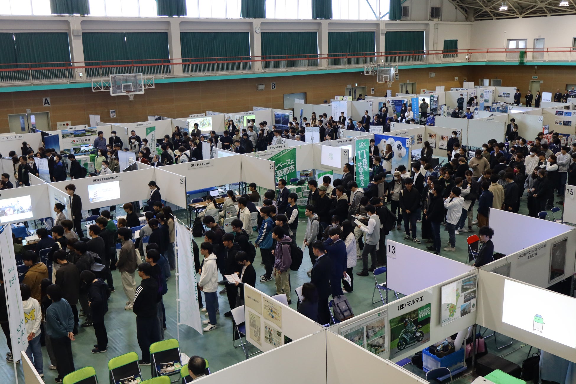 参加した学生は中間試験を終えたばかりでしたが、疲れも見せず元気に各ブースを回り、企業の説明を熱心に聞いていました。また多数のブースで、積極的に質問する学生も見受けられました。