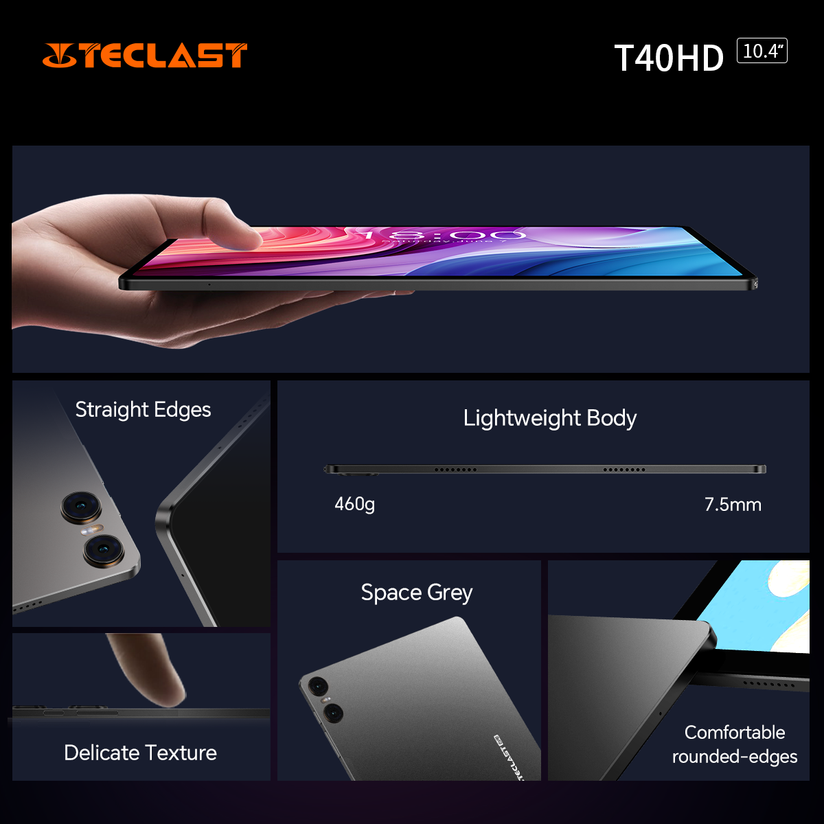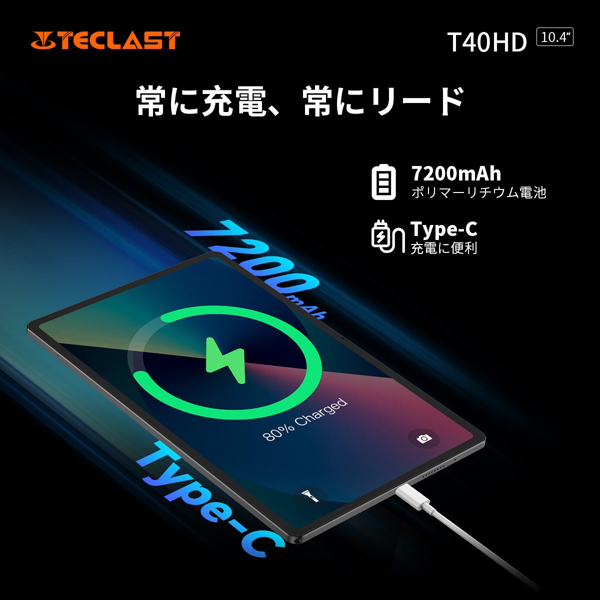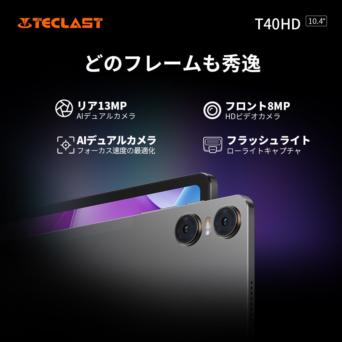 フルラミネートされたディスプレイを備えた、洗練されたストレートエッジのタブレットです。革新的なラミネート加工により、Teclast「T40HD」はわずか7.5mmと驚くほど薄いだけでなく、重さも約460gと驚くほど軽く、比類のない携帯性と快適な使い心地を提供します。テクノロジー、デザイン、利便性の見事な融合です。