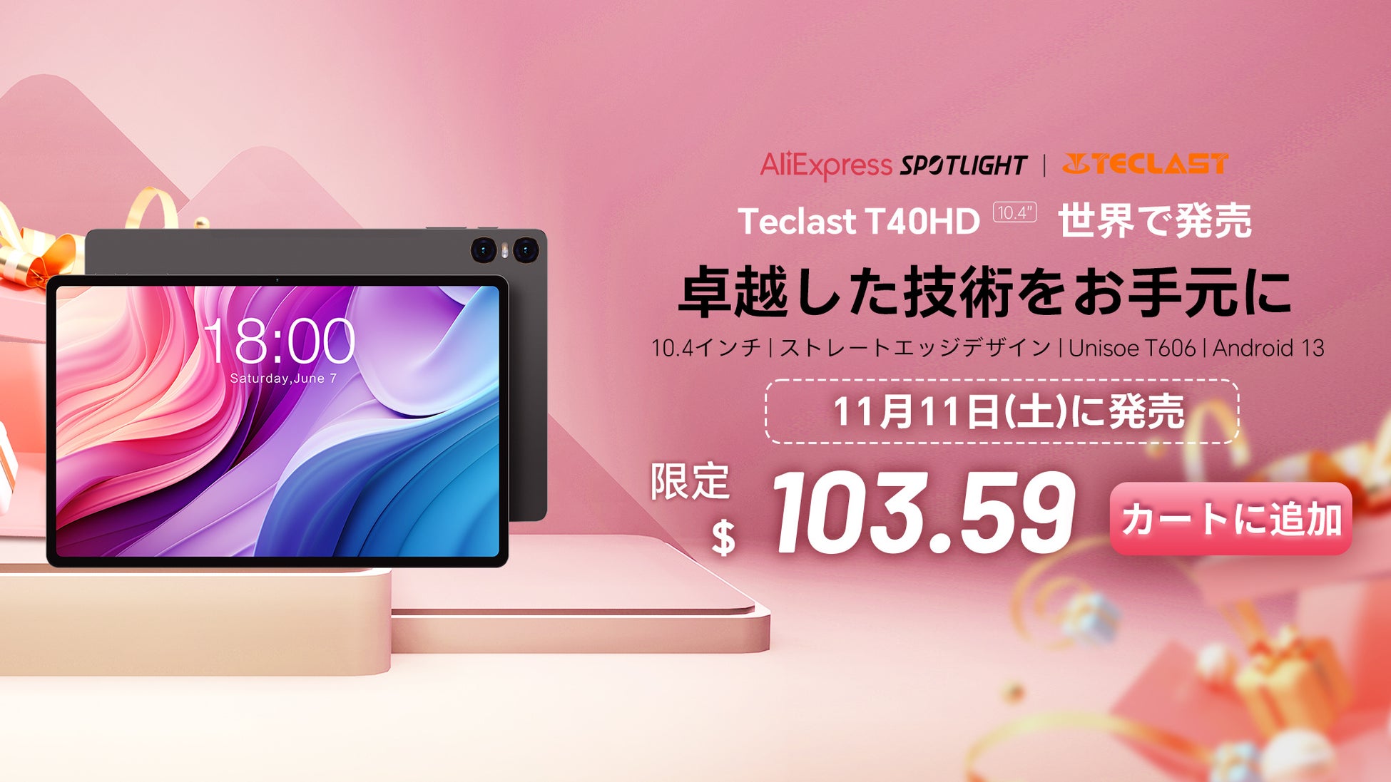 Teclast「T40HD」タブレットAliexpressで販売開始!11月11日(土)限定$103.59で購入できます。1日限定なので、ぜひこの機会をお見逃しなく!!
