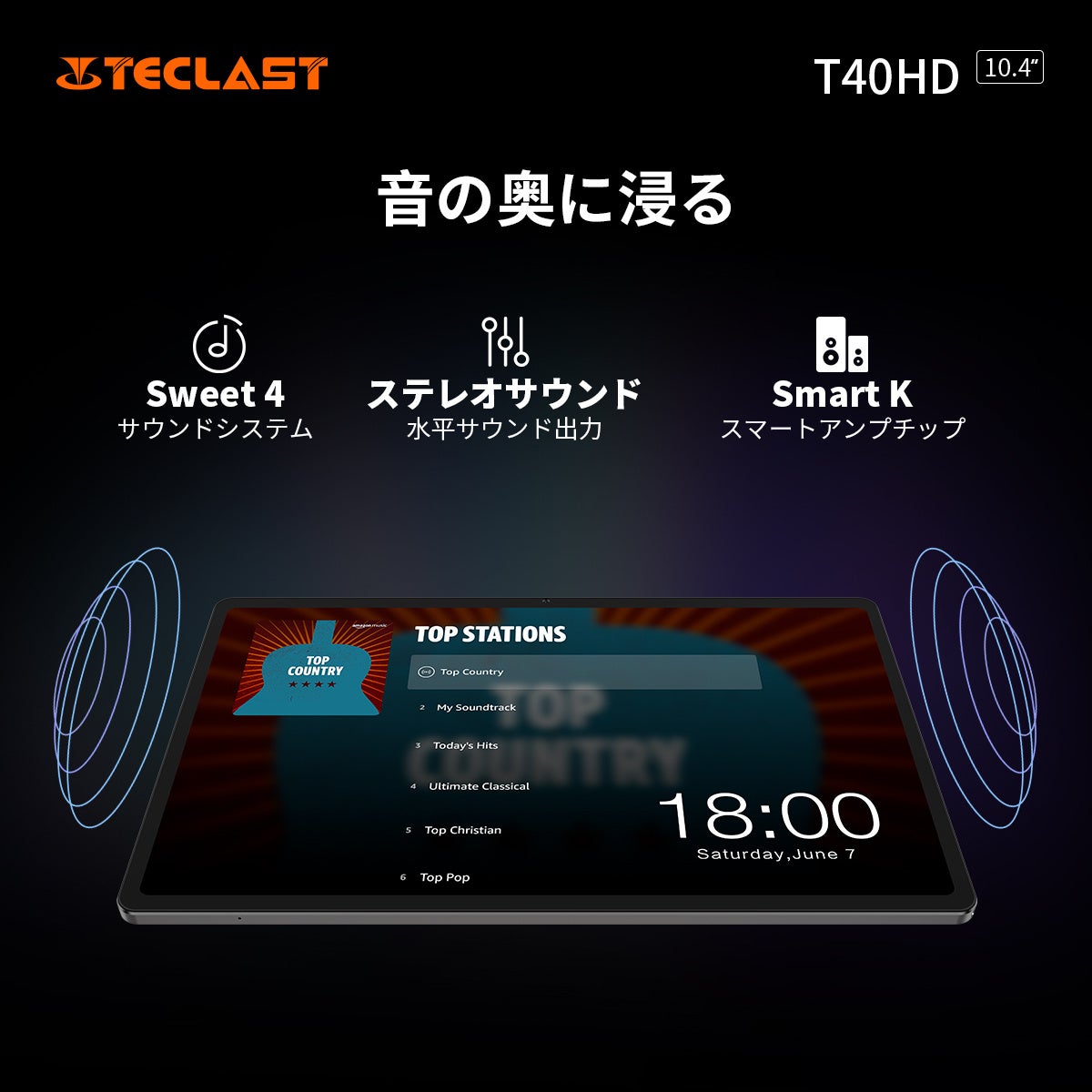 カスタマイズされたTeclast SWEET 4オーディオシステム、水平方向のサウンド出力を選択し、スマートアンプチップと組み合わせて、Teclast T40HDは緻密で臨場感あふれるオーディオ体験を提供し、まるでライブイベントのような体験に浸ることができます。