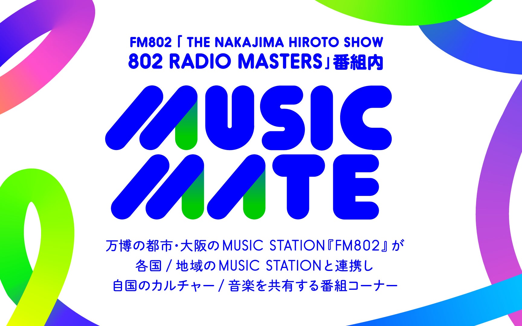 EXPO 2025 大阪・関西万博の開催により国内外のヒト・モノ・カルチャーの交差が一層活発となる2025年。万博の都市・大阪のMUSIC STATION 『FM802』が各国/地域のMUSIC STATIONと連携し、自国のカルチャー/音楽を共有する番組コーナー「MUSIC MATE」をFM802「THE NAKAJIMA HIROTO SHOW 802 RADIO MASTERS」番組内にスタート!