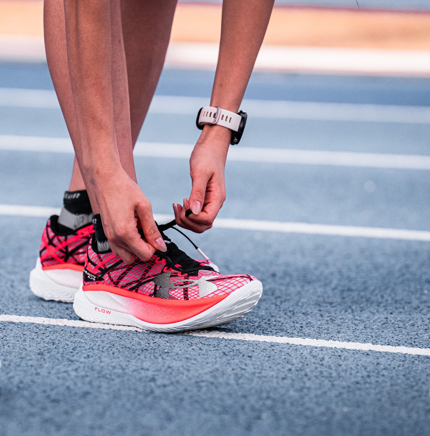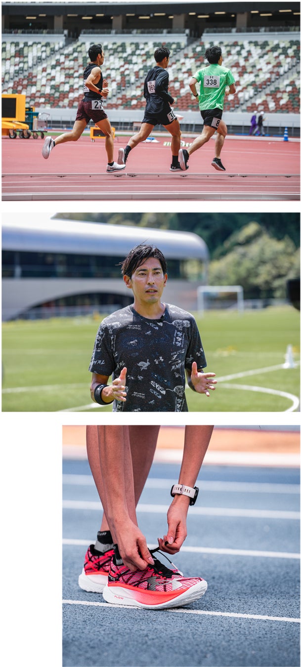 レーシングシューズ「UAベロシティ エリート2」や最新のテクノロジーを搭載したクッショニングモデル「UAインフィニット エリート」などアンダーアーマーのシューズを国立競技場を走りながら試せます。