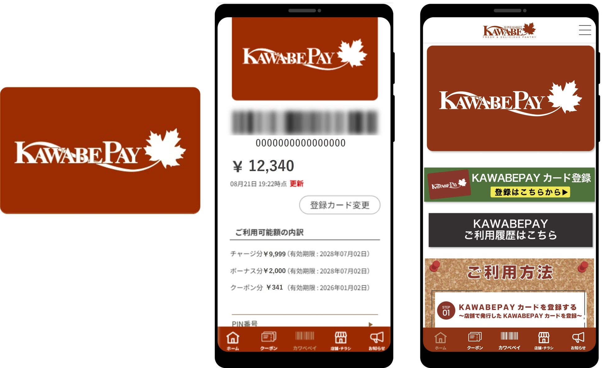 今回、独自Pay発行サービス「Value Card」を導入したカワベは、兵庫県に5店舗の食品スーパー「カワベ」を展開しています。カワベでは、お客様にとっての利便性や満足度向上に加え、デジタルを活用した販促活動の強化を目的に独自Payを採用されました。また、リアルカードのみならず、即座に特売やキャンペーン情報を消費者がアプリを通じて確認できるといった販促活動の強化を目的に、スマートフォンアプリも提供されます。スマートフォンアプリからは、「カワベPay」の残高確認や利用履歴も手軽に確認いただけます。カワベのご担当者様は、「『カワベPay』の利用を促し、よりお客様が再来店したくなるキャンペーンなどにも取り組んでいきたい。また、デジタル販促を活用することで、若年層へのアプローチも強化していきたい」と述べています。