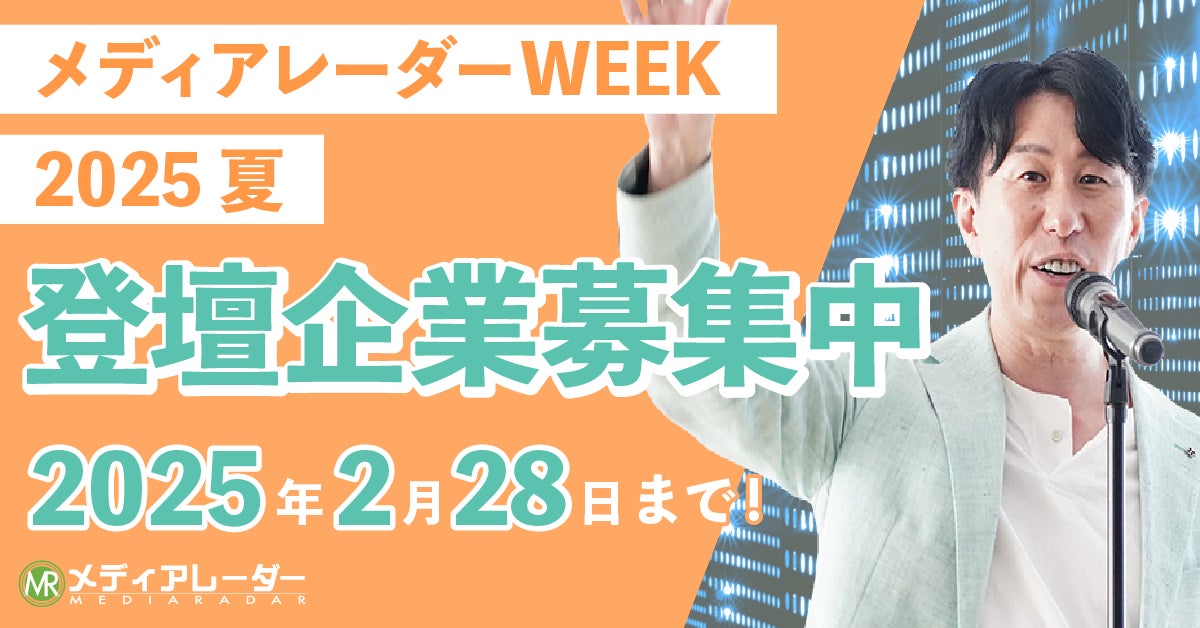 株式会社アイズ(所在地:東京都渋谷区、代表取締役社長:福島範幸、東証グロース:5242)が運営するNo.1*¹の広告業界のプラットフォーム「メディアレーダー」は、主催する「第18回 メディアレーダーWEEK 2025 夏」の登壇企業の募集を開始しました。