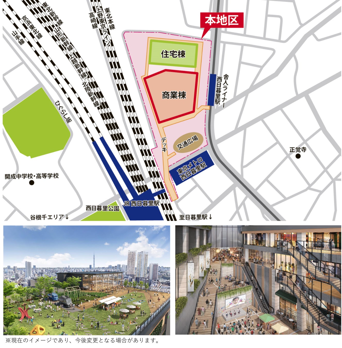 「西日暮里駅」 各路線より徒歩1~3分程度 ※デッキ整備予定