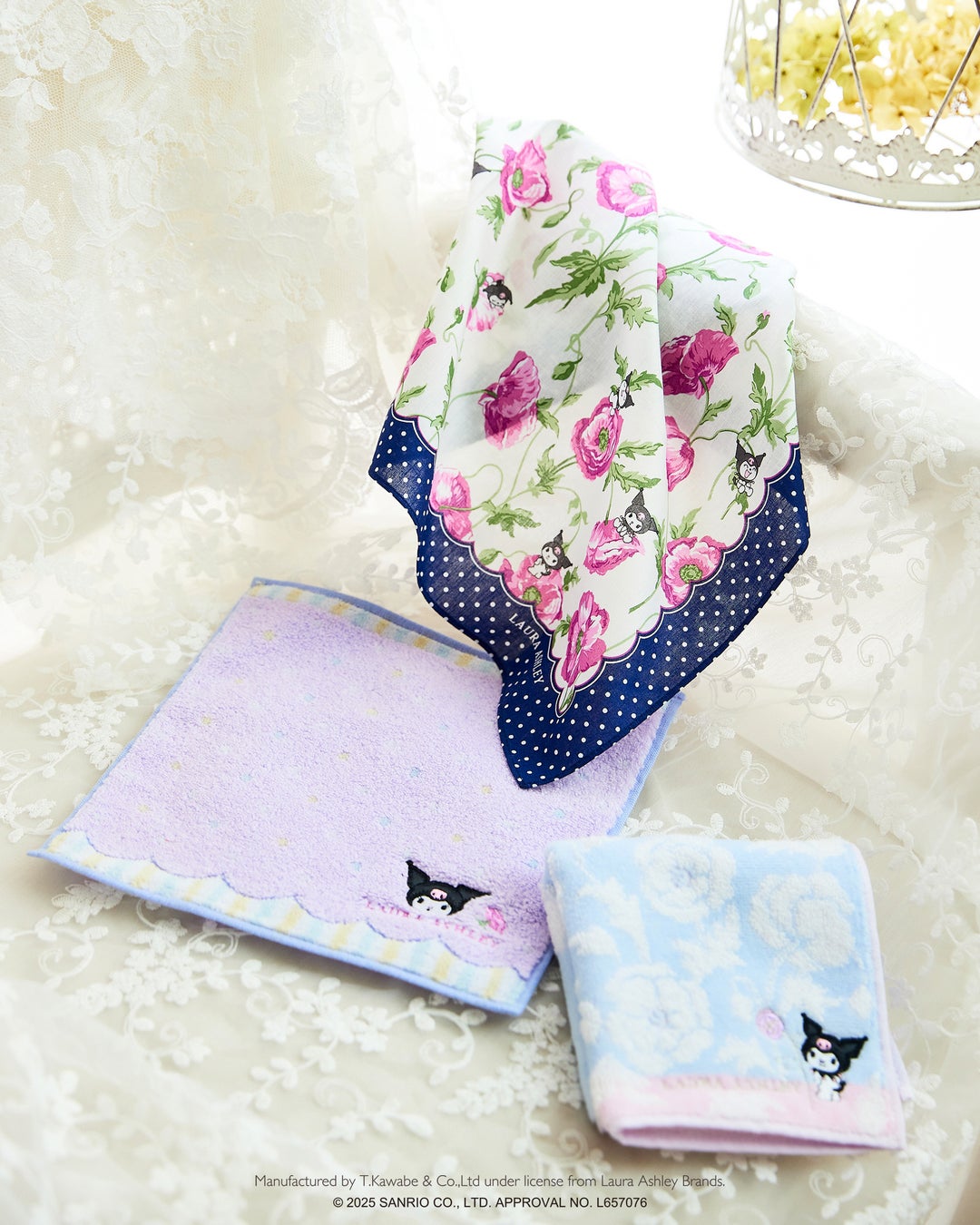 服飾雑貨メーカー川辺株式会社 『ローラ アシュレイ×サンリオキャラクターズ』のハンカチアイテム 新登場!