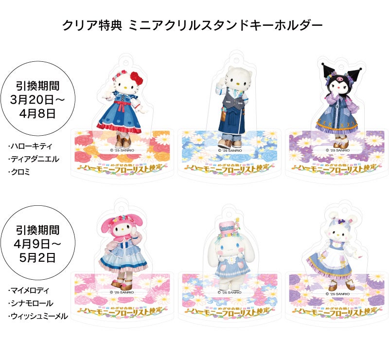 また期間限定で、園内各所に設置したハローキティたちからの「検定問題」を解いて合格を目指す回遊型謎解きコンテンツ『めざせ合格!ハーモニー フローリスト検定』(有料・数量限定)も実施します。合格した方にはミニアクリルスタンドキーホルダーをプレゼント。さらに「#ハーモニーランド謎解き」をつけてSNSに投稿するとオリジナルステッカーをお渡しします。