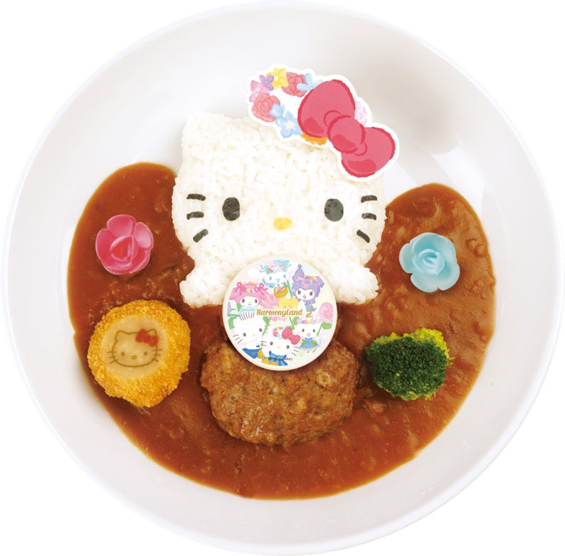 期間限定メニューでは、春らしい色鮮やかなメニューが登場します。お花のウェハースをトッピングした『キティのフラワーカレー』が登場。お子さまも食べやすい甘口カレーとなっています。そのほかティラミスを植木鉢に見立てお花のチョコなどをトッピングした『植木鉢風フラワーティラミス』や、たっぷりのホイップに花びらチョコやリーフチョコをトッピングした『フラワーツイストドーナツ』、ローズ・ラベンダー・ミントの中からお好きな味が選べる『フラワーソーダ』・『フラワークリームソーダ』もお花をトッピング。限定メニューをご注文のお客さまにはノベルティもプレゼントします。