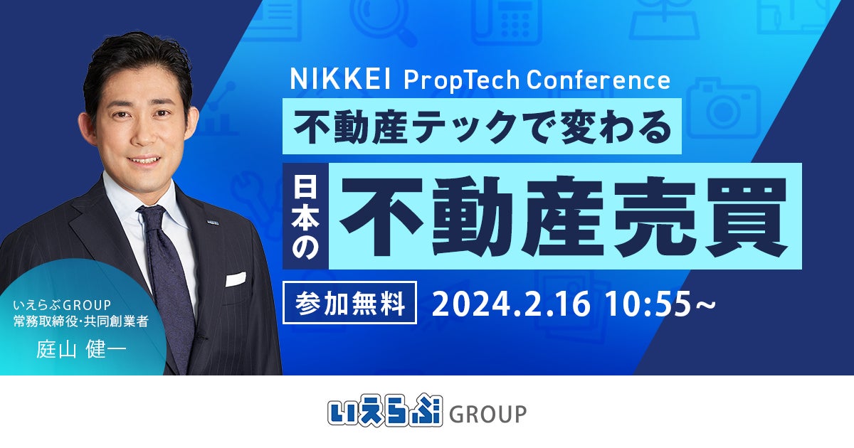 2024年2月16日(金)、御茶ノ水ソラシティで開催される日本経済新聞社主催のハイブリッドイベントNIKKEI PropTech Conferenceにて、株式会社いえらぶGROUP(本社:東京都新宿区、代表者:岩名泰介、以下「いえらぶGROUP」)の常務取締役 庭山健一が登壇します。