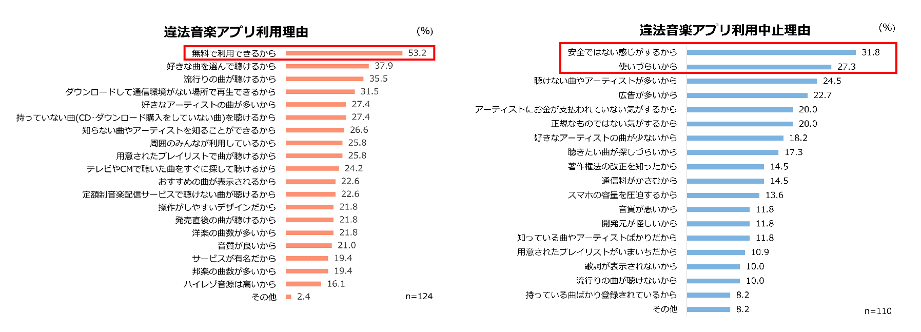 - 違法音楽アプリを利用する理由は「無料で利用できる」がトップ、中止理由は「安全ではない感じがする」「使いづらい」が上位に