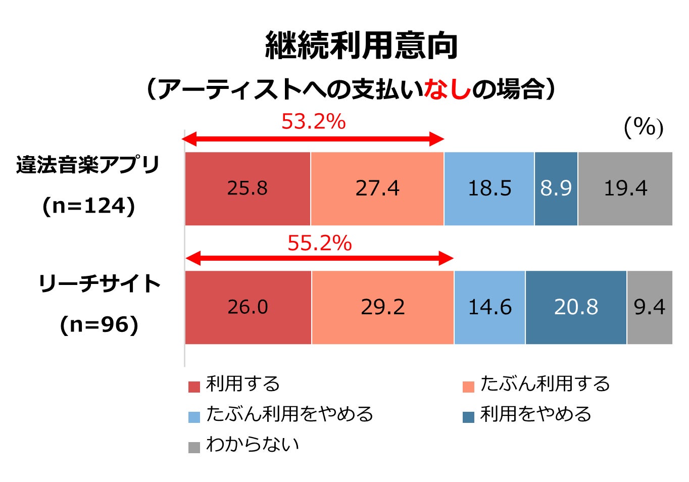 - アーティストに収益が支払われていると誤った認識を持つリーチサイト利用者は55.2%