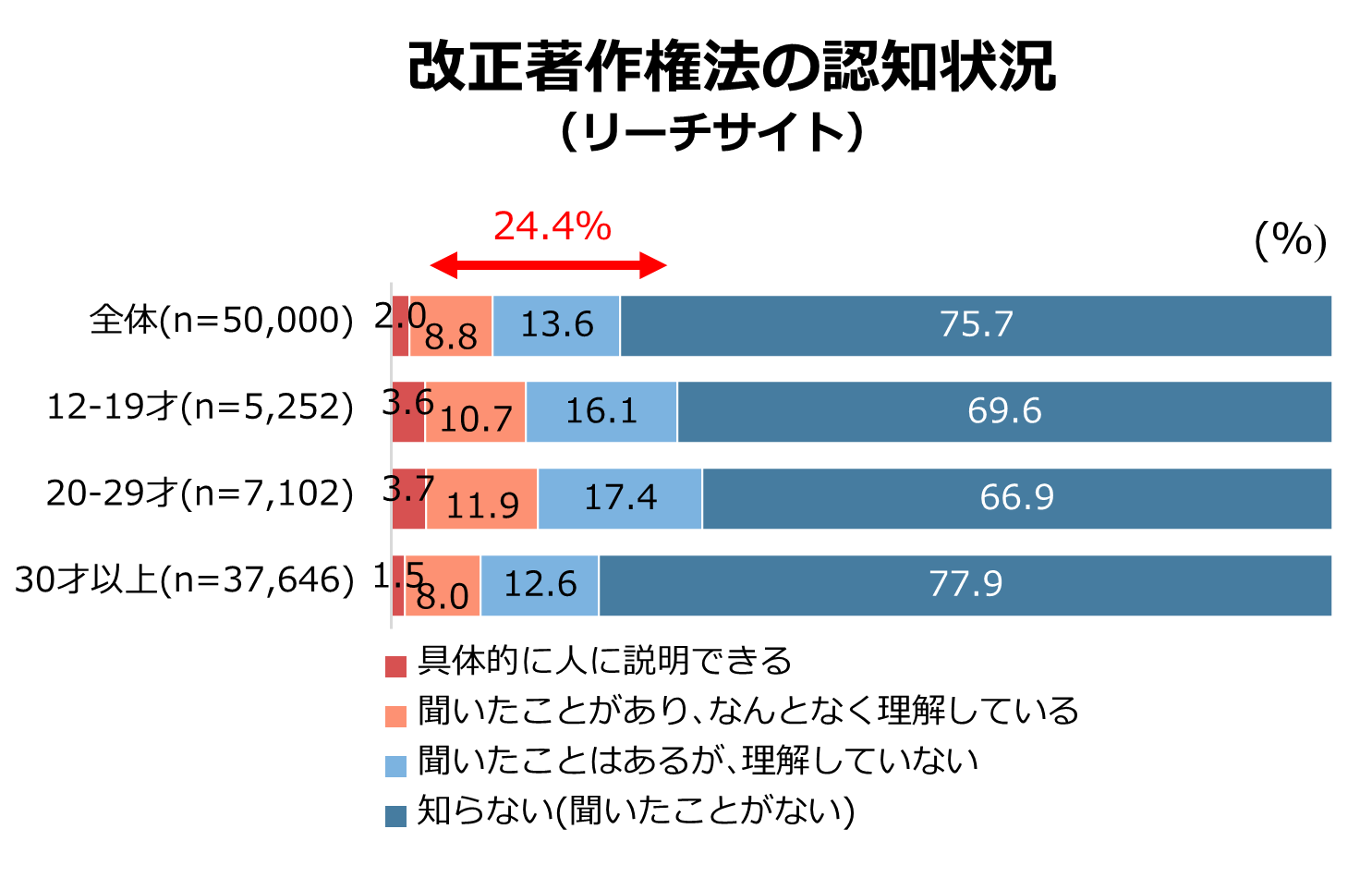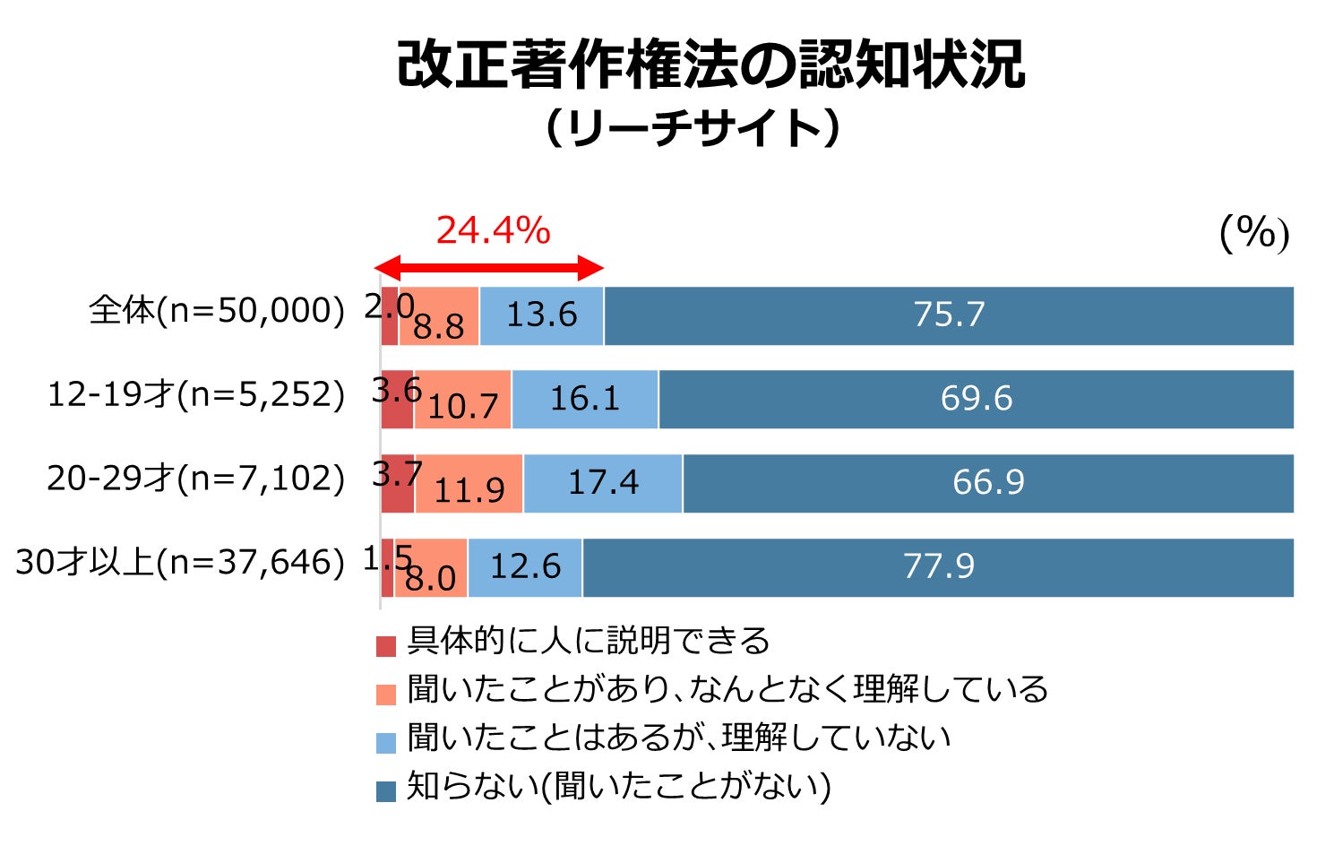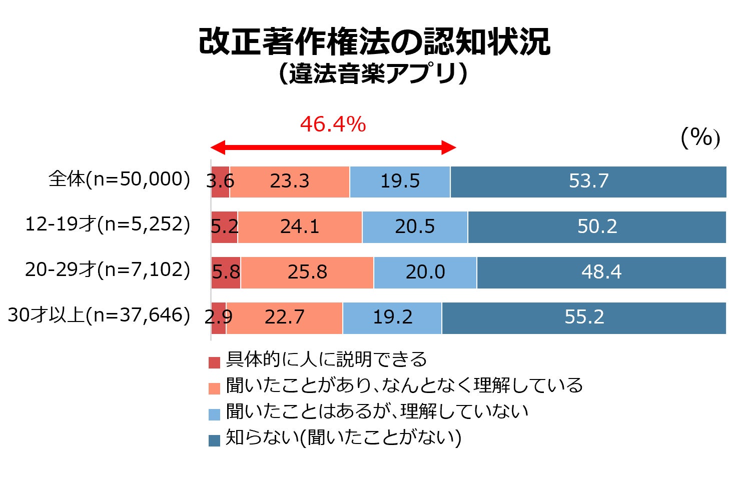- 違法音楽アプリの規制強化を目的とする改正著作権法の認知率は昨年と横ばい