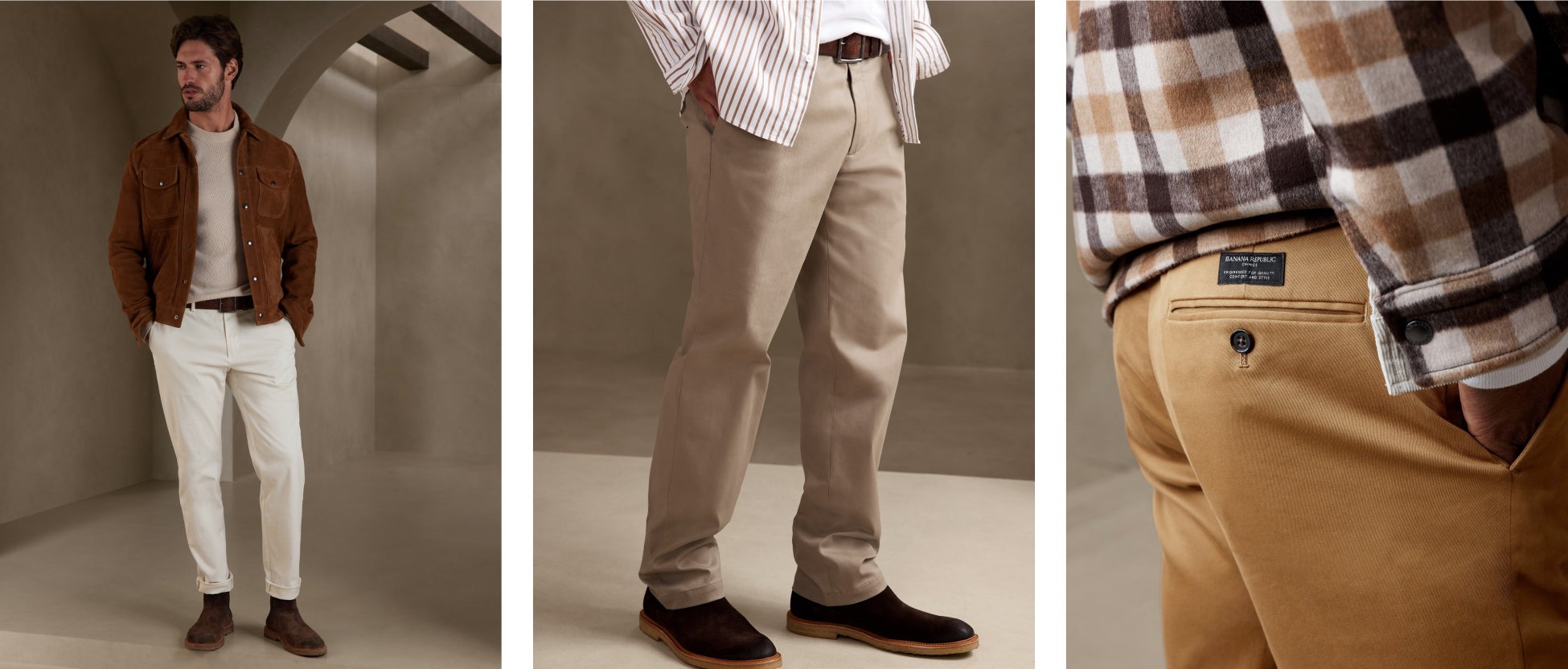 持続可能なサステナブル素材で、新たなシルエット展開でより様々なライススタイルに寄り添うバナナ・リパブリックのラピッドムーブメントチノをお楽しみください。