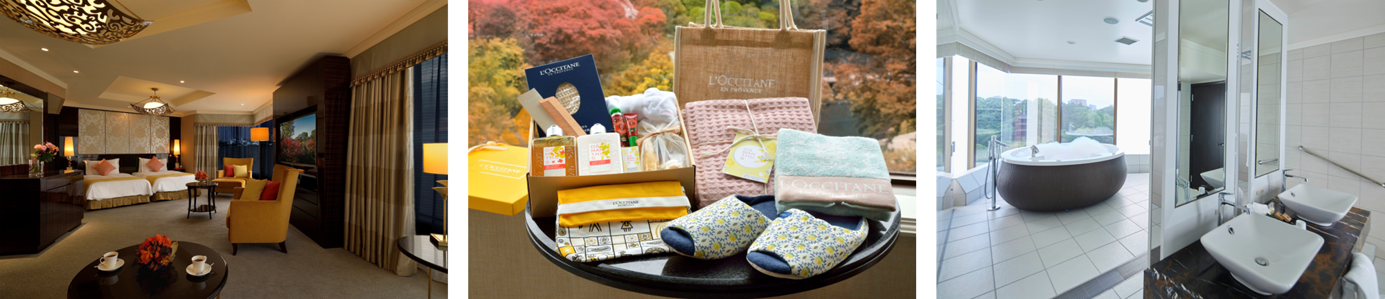 ロクシタンの人気フレグランス「オスマンサス」の香りに抱かれるバスタイム&ステイを。世界に一つだけの特別仕様のコラボレーションルームと計18点の贅沢なロクシタンのギフトコレクション、そしてロビーラウンジ「ル・ジャルダン」のアフタヌーンティーを客室にご用意いたします。夜には、千の光に灯される庭園と金木犀色の東京雲海の景色もご覧いただけます。