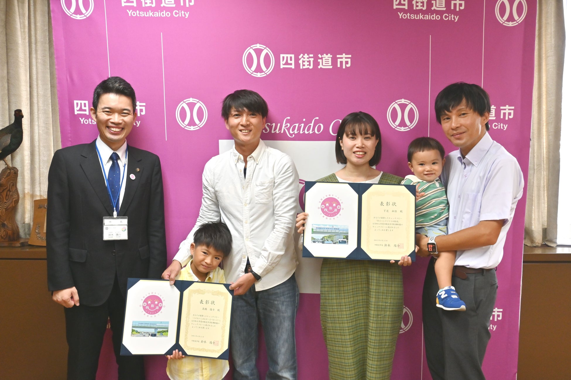 四街道市PR 横断幕キャッチコピー表彰式が、9月25日(月)に四街道市役所で行われ、キャッチコピー提案者の髙橋 優斗(たかはし まさと)さん、下道 由佳(したみち ゆか)さんに表彰状を授与しました。