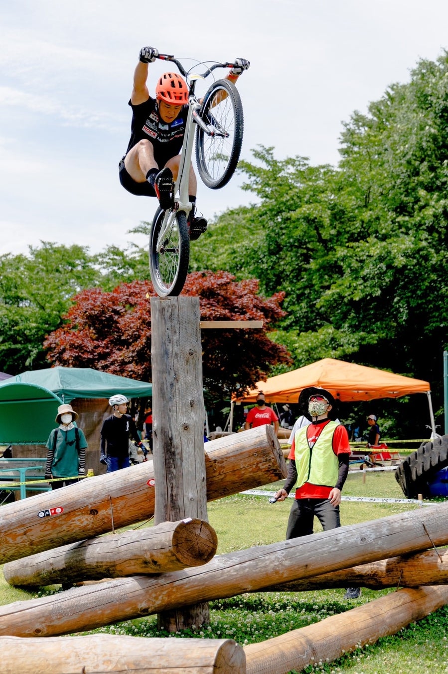 トライアルはスペイン発祥の自転車競技で、岩、丸太、コンクリートなど、人工的に作られたコースや自然の地形に設定されたゲートを足をつくことなくクリアすることでポイントを獲得する事ができます。5つの様々なタイプで構成されたセクション(コース)があり、1セクション内に6つのゲート、制限時間は2分。ハードなセクションをいかにミスを少なく、かつスピーディーに攻略してポイントを多く獲得できた者が勝者となる競技です。レース前はセクションを試走することはできないため、徒歩での下見のみとなるので本番での緊張感は言葉に表せないほどです。