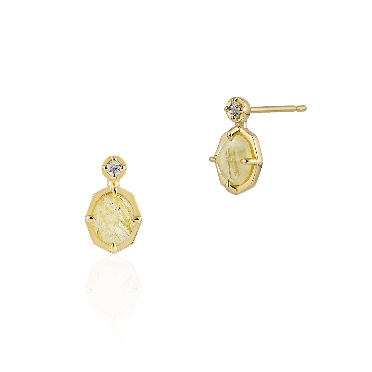 K10YG Pierced Earrings / Golden Rutilated Quartz / White Topaz \39,600
