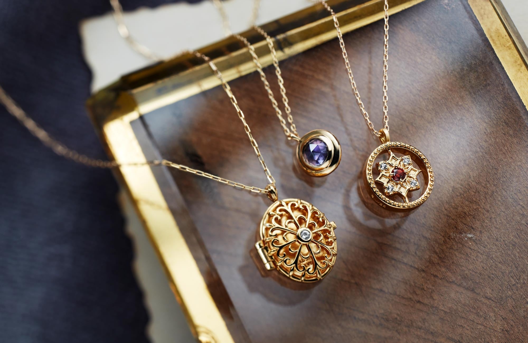 時代を越えて人々に愛されてきたクラシカルなロケットやスピナー、胸に秘めた祈りや記憶をそっと包み込む小さな宝石箱たち。胸元にそっと添えた瞬間、遠い記憶がやさしくよみがえり、煌めく石が「これからの願い」へと姿を変えていきます。身に着けた瞬間に、自分だけの小さな祈りが息づくように。想いを込めたモチーフや色石が、日常のなかでふと心を照らしてくれます。