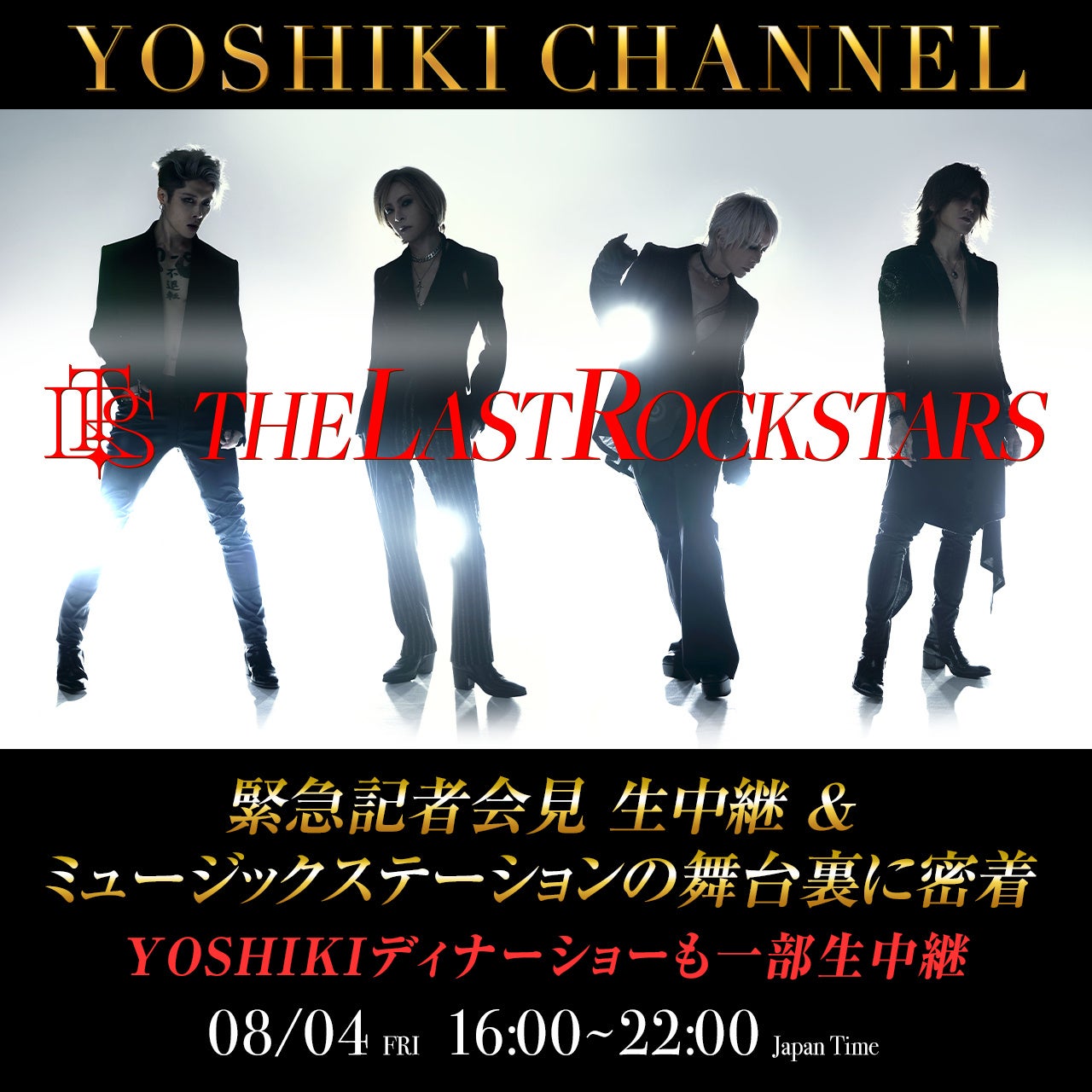 8/4 THE LAST ROCKSTARS 緊急記者会見 生中継&ミュージックステーションの舞台裏に密着YOSHIKI「世界一豪華なディナーショー」も一部生中継 スペシャル生放送決定