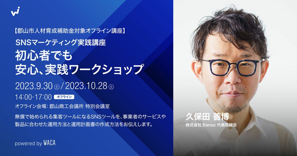 2023/9/30(土)・10/28(土)【郡山市人材育成補助金対象オフライン講座】SNSマーケティング実践講座 初心者でも安心、実践ワークショップ