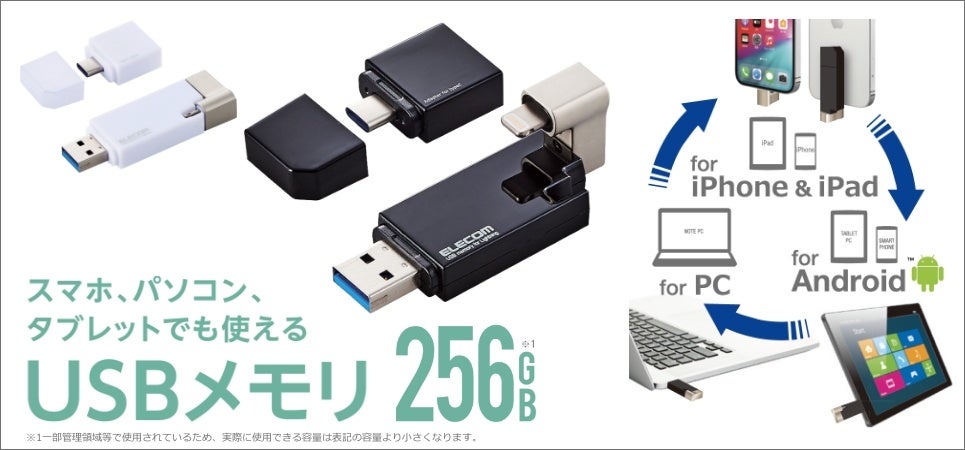 エレコム株式会社(本社:大阪市中央区、取締役社長:柴田幸生)は、スマートフォン(iOS/Android)、パソコン、タブレットでも使える、アプリでバックアップも簡単にできる大容量256GBのUSBメモリーを新発売いたしました。