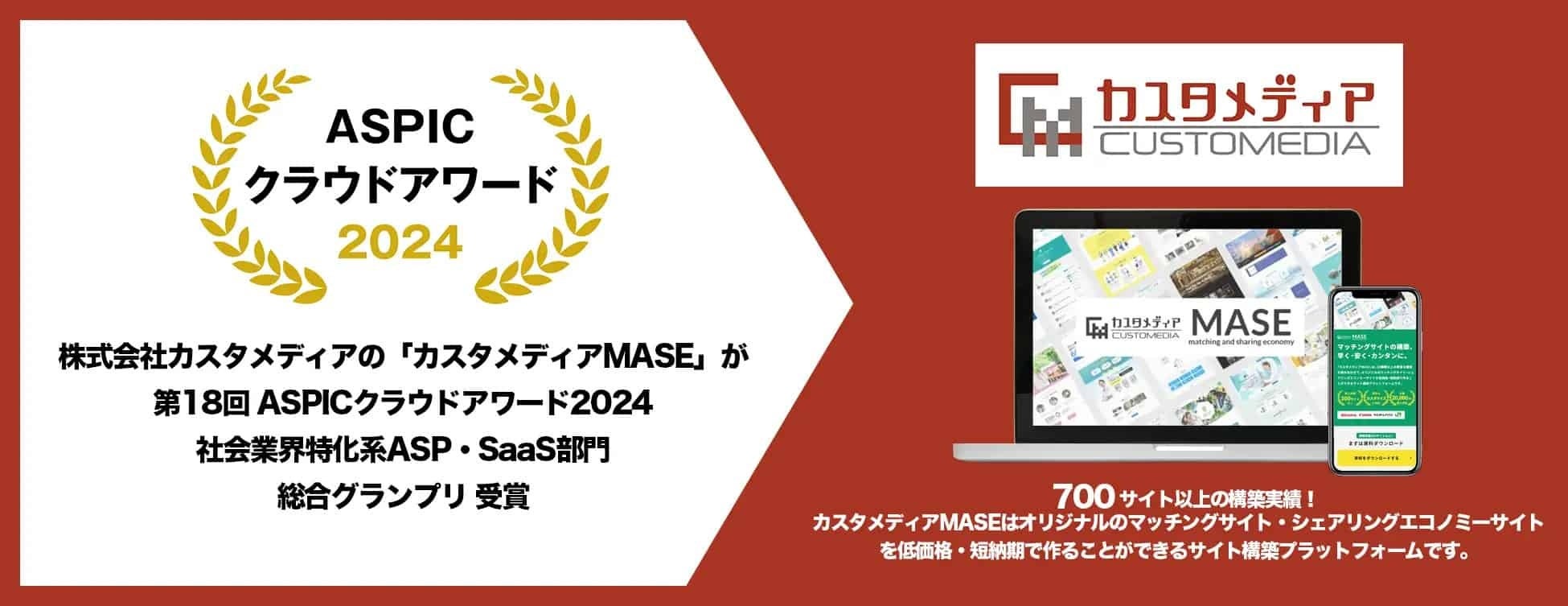 カスタメディアMASEとは、オリジナルのマッチングサイト・シェアエコノミーサイトを低価格・短期間で作ることができるサイト構築プラットフォームです。