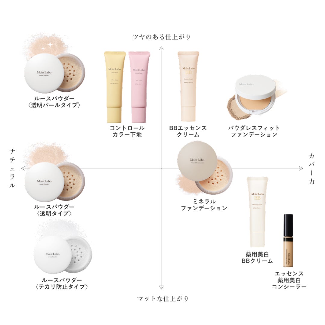 美容液成分贅沢配合で、 日中もメイクしながら、なりたい肌をアイテムで選べる スキンケア発想のベースメイクシリーズモイストラボから世界初のフィットジュレ処方のパウダーファンデーションが新登場します