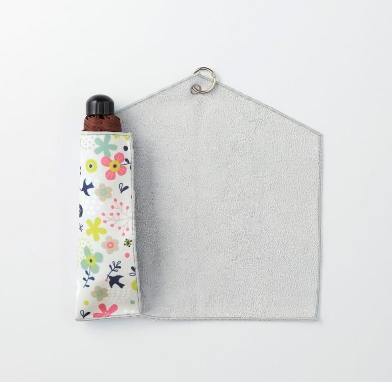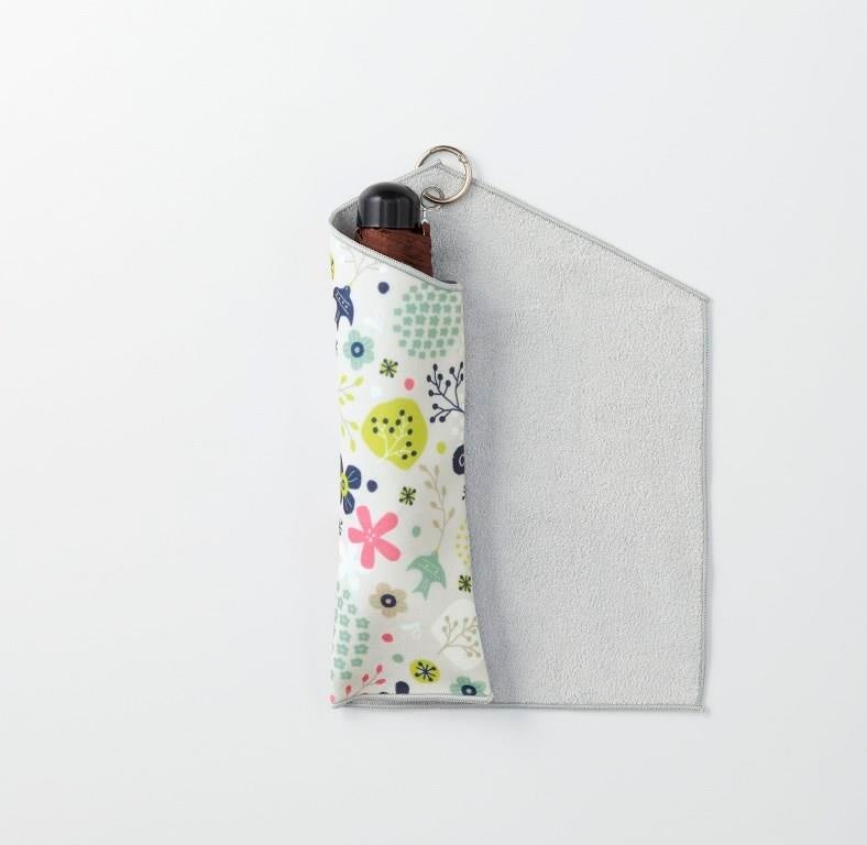 底までカバーできる便利なポケットに、傘を入れてくるくると包み込むだけで吸水性のあるマイクロファイバー素材の傘袋に。布と布がピタッと密着するからサイズや形を選ばず簡単フィット!便利なカラビナ付なのでカバンなどに吊り下げて持ち運びもラクラク。