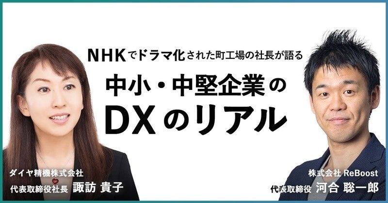 登壇:ダイヤ精機株式会社 代表取締役 諏訪貴子、株式会社ReBoost 代表取締役 河合聡一郎
