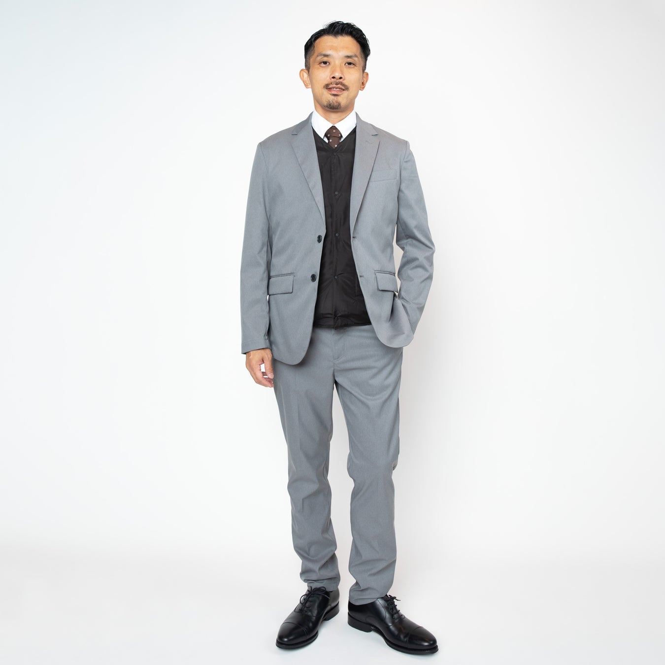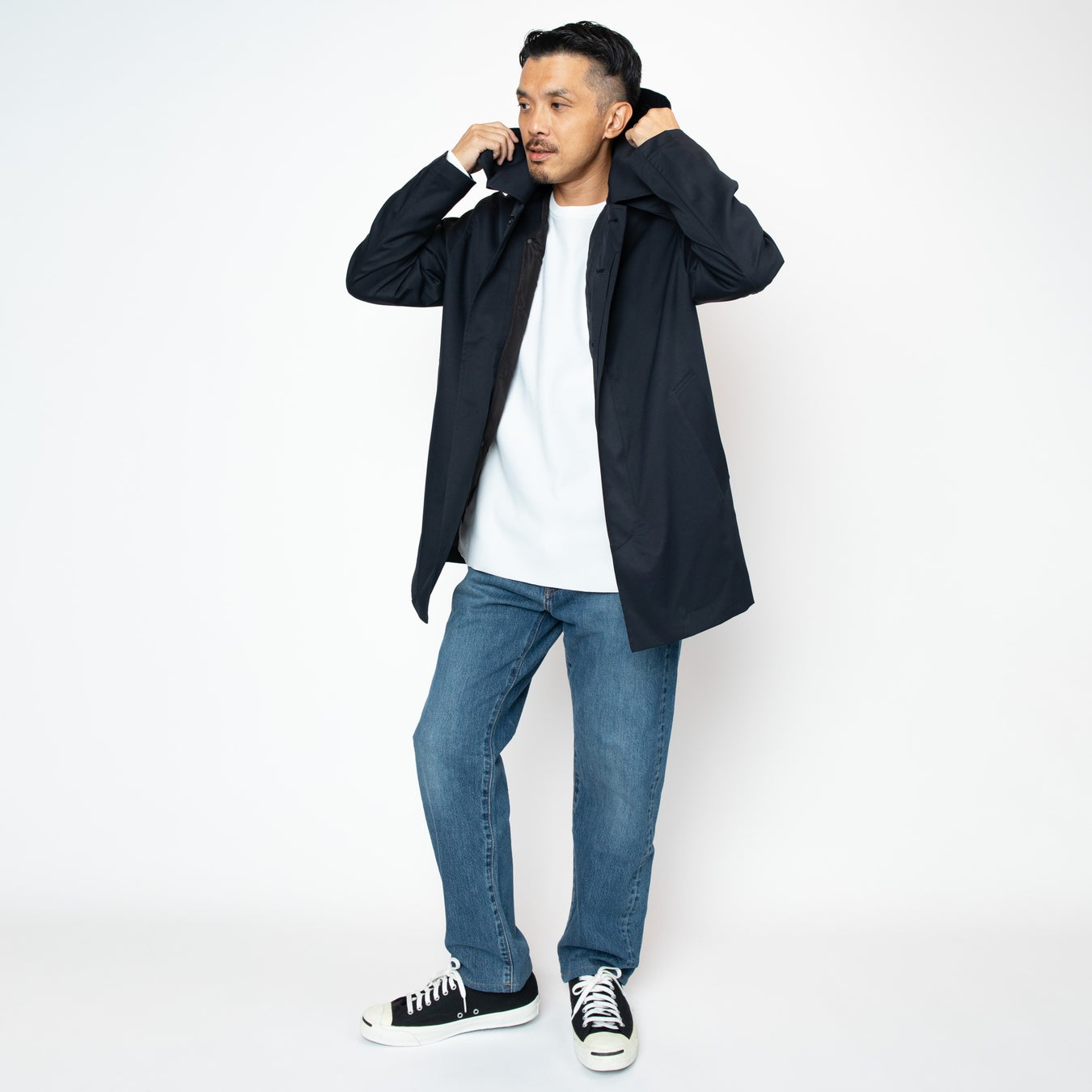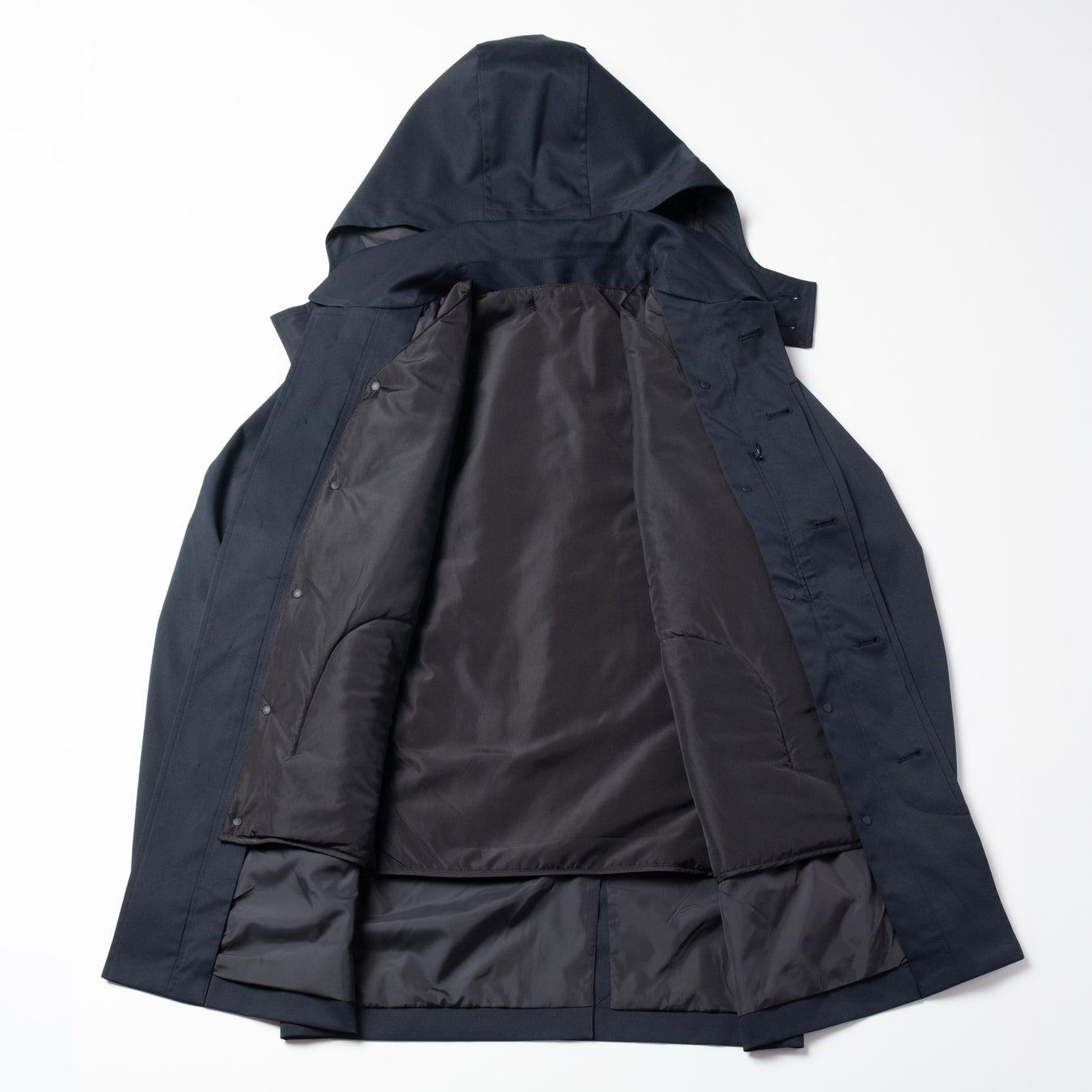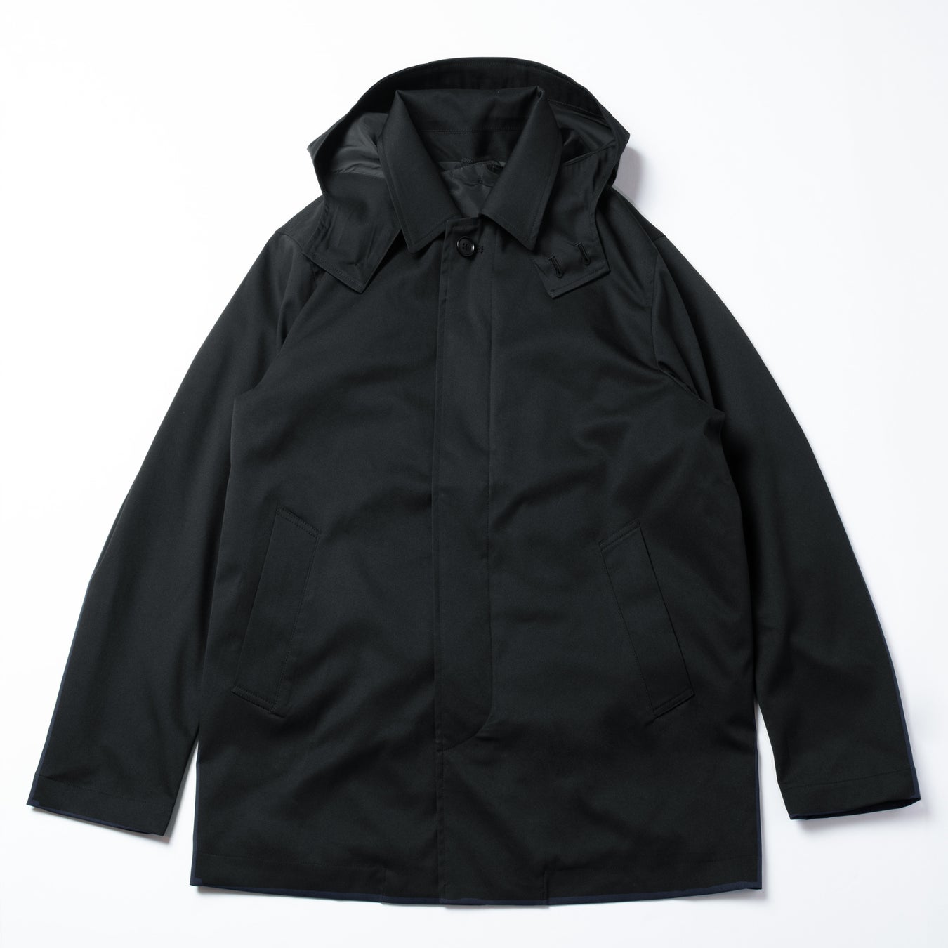 特徴:秋から春まで着用できるショート丈のアウター。スナップボタンで取り外し可能なベストは、スーツジャケットの下にインナーダウンとして着用でき、気温やスタイルに応じて着方を変えられます。フードは着脱可能。フード無ではステンカラーコートとして着用でき、フード有では顎下までボタンで留めることができるため、風よけに最適。生地には速乾・撥水・ストレッチ・防シワ・耐久性などの機能を備える自社オリジナル素材「ultimex」を使用。ベストの中綿は再生繊維を使用した環境にやさしい素材である「サーモライト®エコメイド中綿」を使用し、軽量かつ優れた保温性を実現しました。