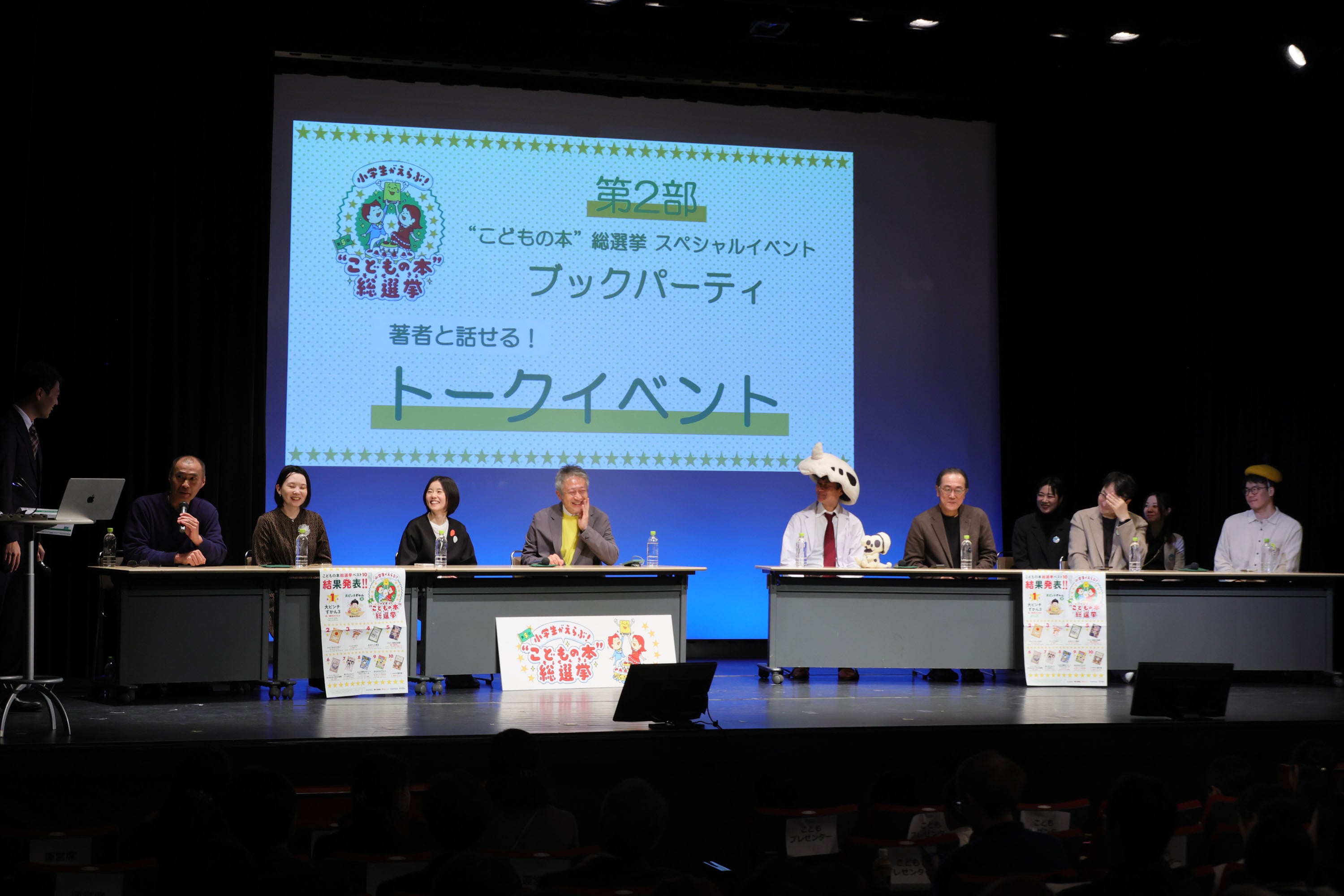 また、こどもたちが「本」と出会い、「著者」と出会い、「仲間」と出会うイベントとして、豪華著者と一般公募により選ばれた全国の本好き小学生を含む約200名が参加して行う、こどもの本総選挙スペシャルイベント「ブックパーティ」も開催。著者・こどもと共に挑戦したクイズ大会の他、こどもたちの質問に著者が答えるトークイベントでは、こどもたちのまっすぐな質問に著者がユーモアを交えて答えるなどし、温かい雰囲気のイベントとなりました。
