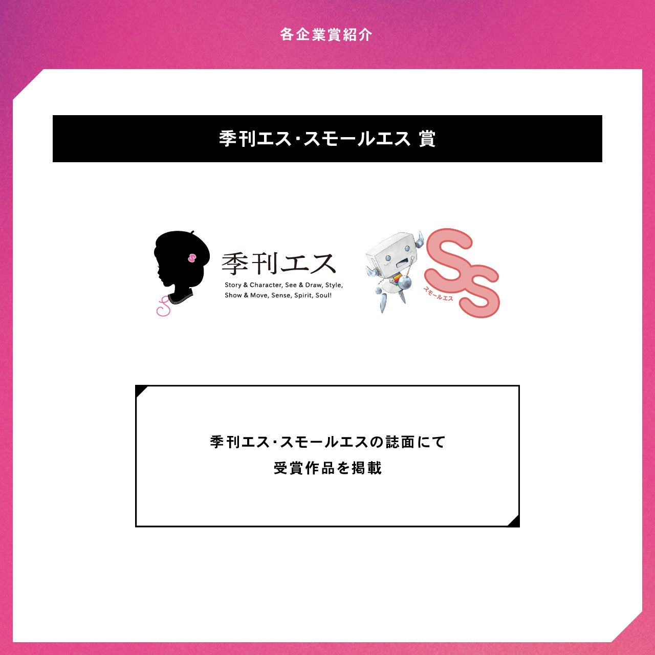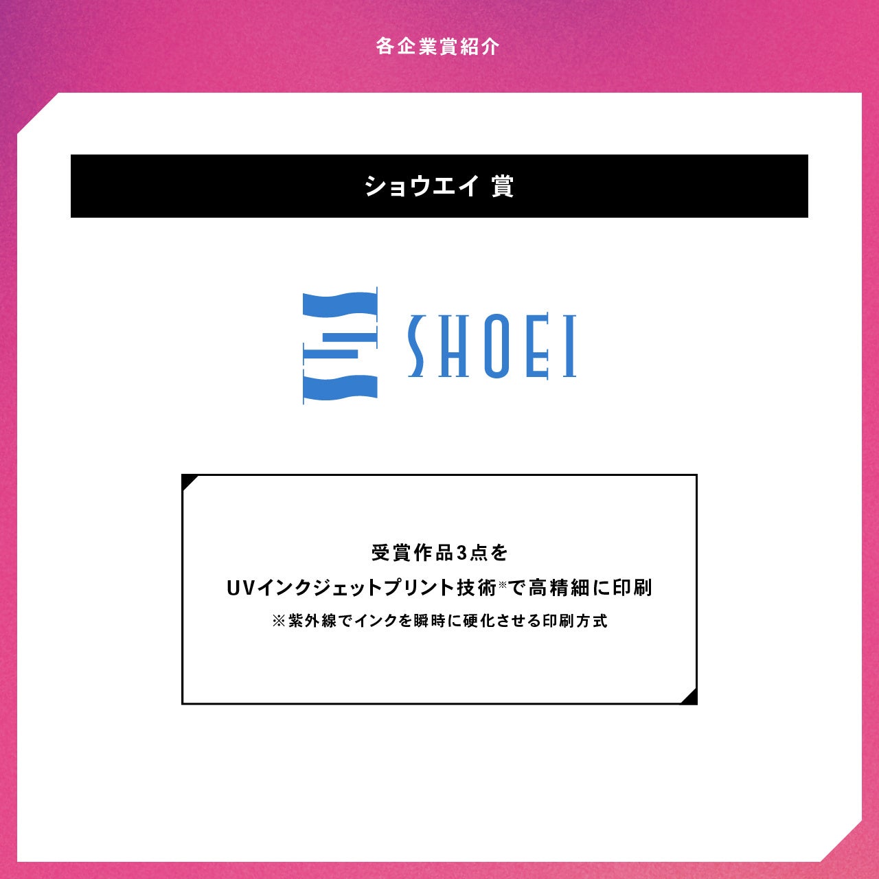 また今年度より、株式会社パイ インターナショナルの協力による「季刊エス・スモールエス賞」と、ショウエイ株式会社による「ショウエイ賞」が企業賞として増設されました。季刊エス・スモールエス賞では、同名イラスト誌への掲載が確約されており、応募した作品が全国の書店等に流通する機会を獲得できます。また、ショウエイ賞では、数多くのプロクリエイターによる個展での実績を誇るUV印刷を、受賞作品に施していただけることとなっています。