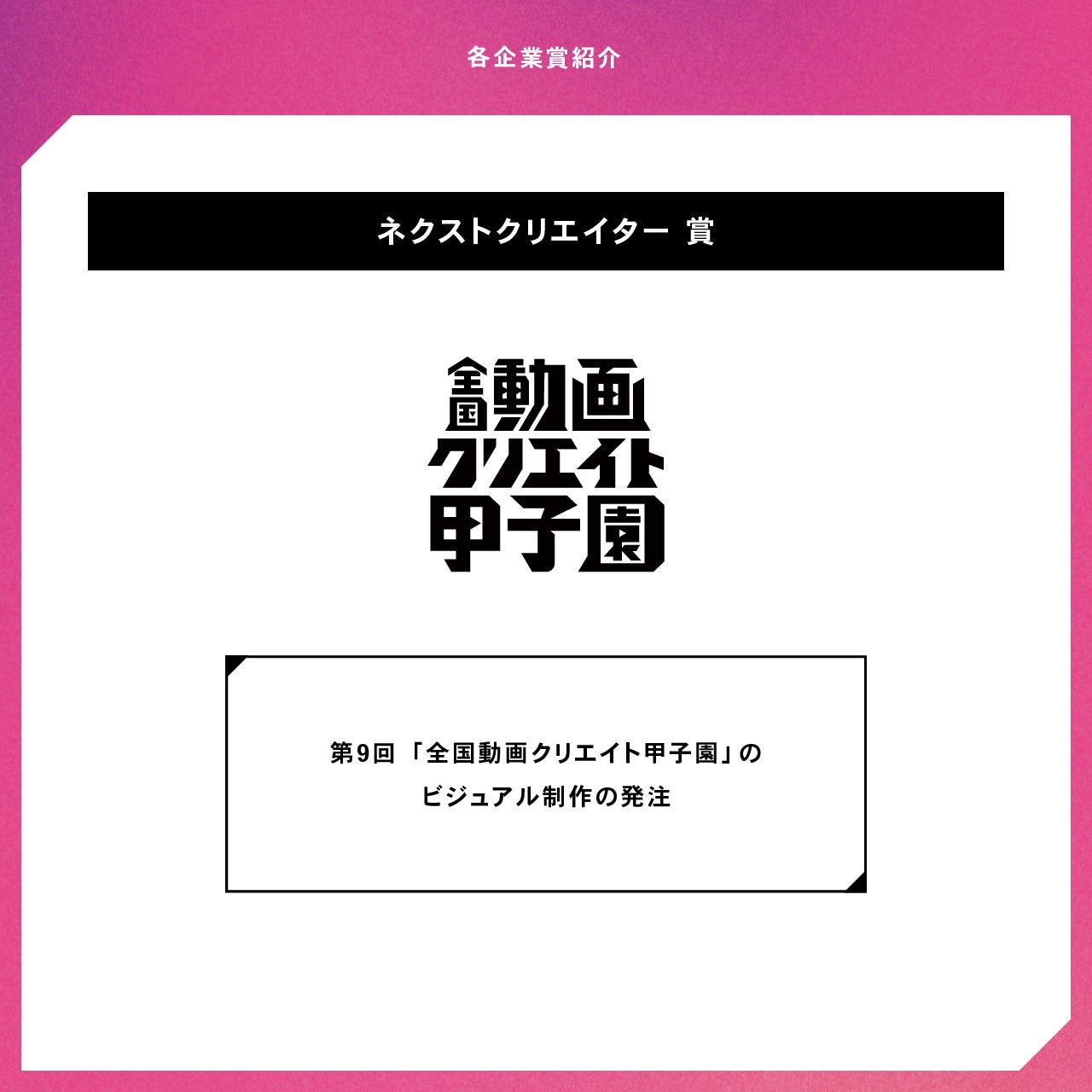 高校生クリエイターにさらなるチャンスを提供するため、今年度も「ネクストクリエイター賞」を実施します。この賞は、企業から受賞者への正式な案件発注を前提としたWチャンス枠となります。全国動画クリエイト甲子園の企画協力により、受賞者には第9回「全国動画クリエイト甲子園」のビジュアル制作の発注が予定されています。