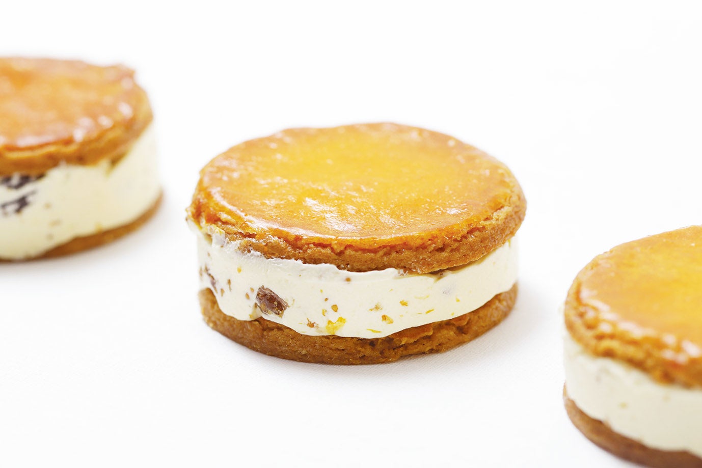 レーズンとドライイチジクを混ぜ合わせたバタークリームをたっぷりサンド。サブレ生地にもクリームにもバターを使用し、風味豊かに仕上げました。