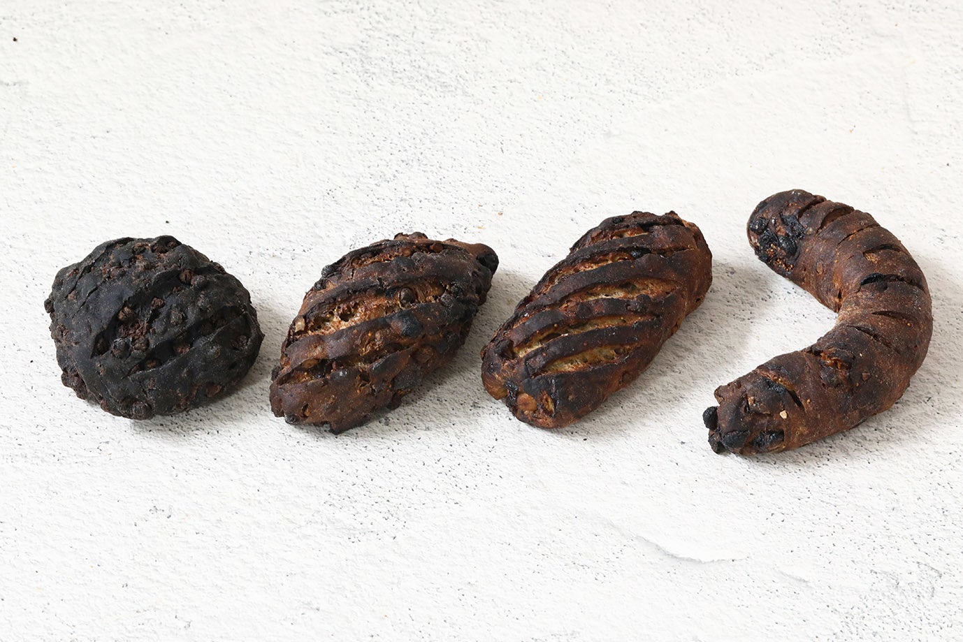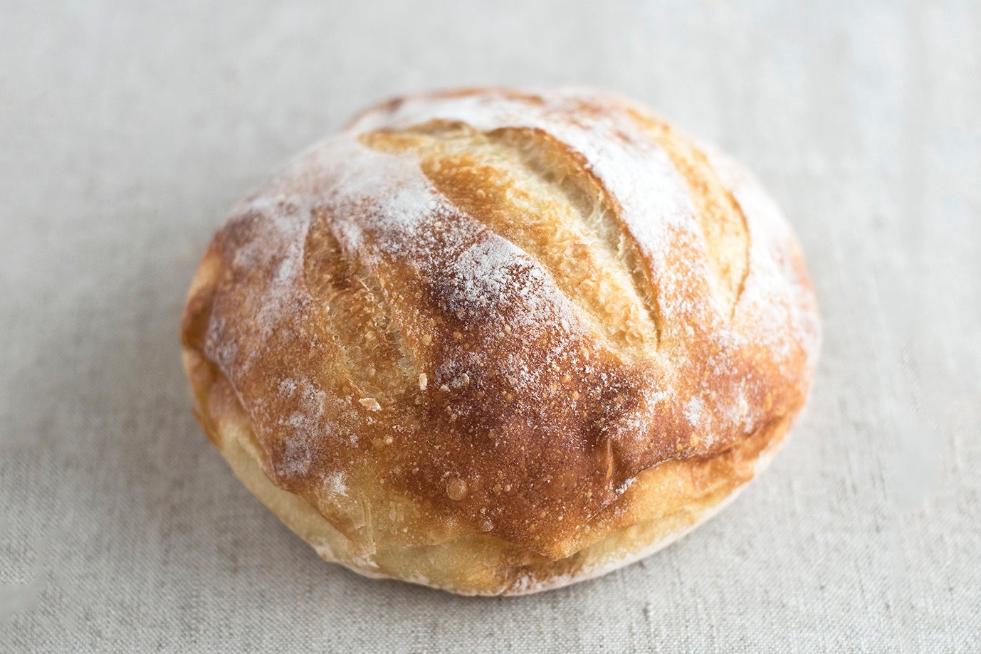 フランス産のゲランドの塩や、イタリア産の中硬⽔を使⽤した⽣地に、⾚ワインに浸けたオーガニックの⽩イチジク、レーズン、クルミを合わせて焼き上げました。ドライフルーツの奥深い⽢みや、クルミの⾷感がアクセント。