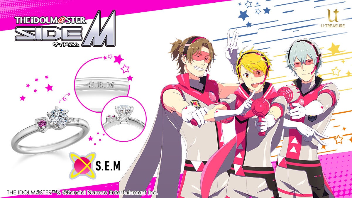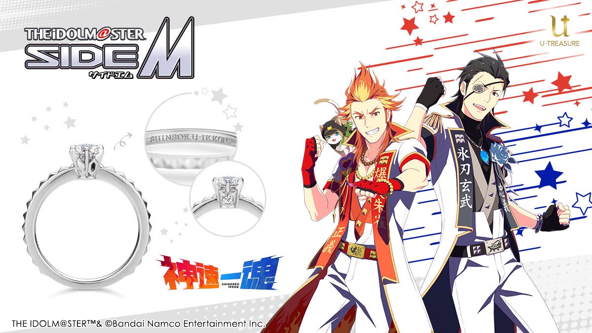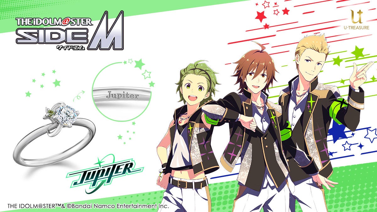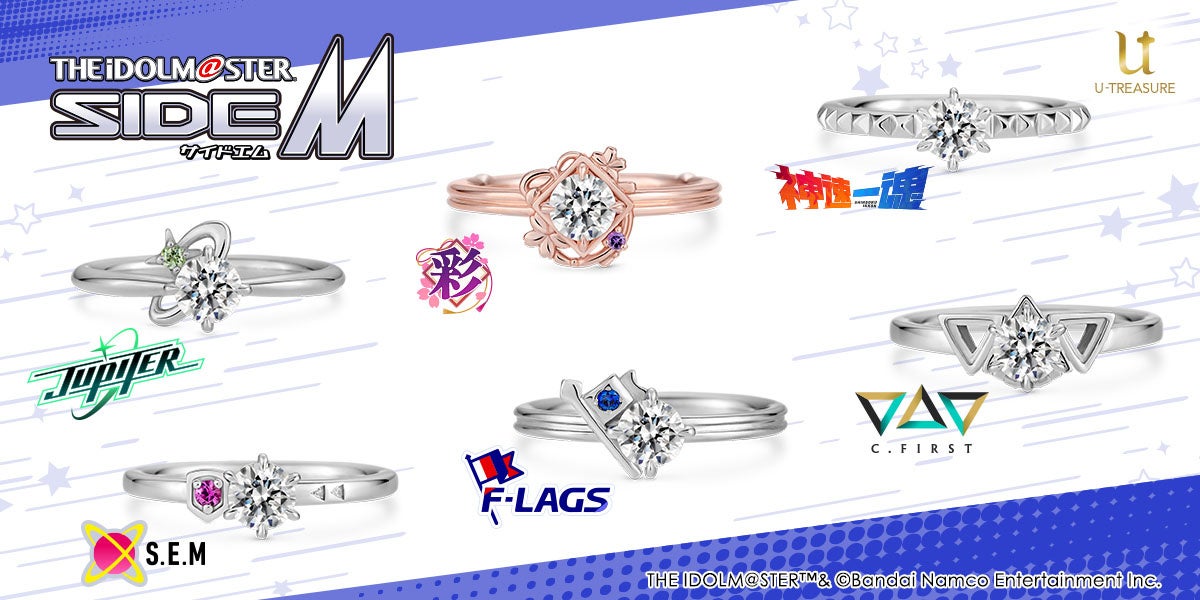 大人のための本格的なキャラクタージュエリーを扱うユートレジャー(東京都豊島区:代表取締役:伊藤 崇史)は、「アイドルマスター SideM」とコラボしたソリティアリング(指輪)の最終弾6種類を、6月17日(金)~7月10日(日)の期間限定で予約受付を行ないます。このたびの新作は、Jupiter、彩、神速一魂、S.E.M、F-LAGS、C.FIRST、6ユニットそれぞれのロゴをイメージし豪華にデザインしました。「アイドルたちの輝きが世界中に届きますように」と願いを込めて。ユートレジャーコンセプトストア池袋、ユートレジャーオンラインショップにて取り扱います。